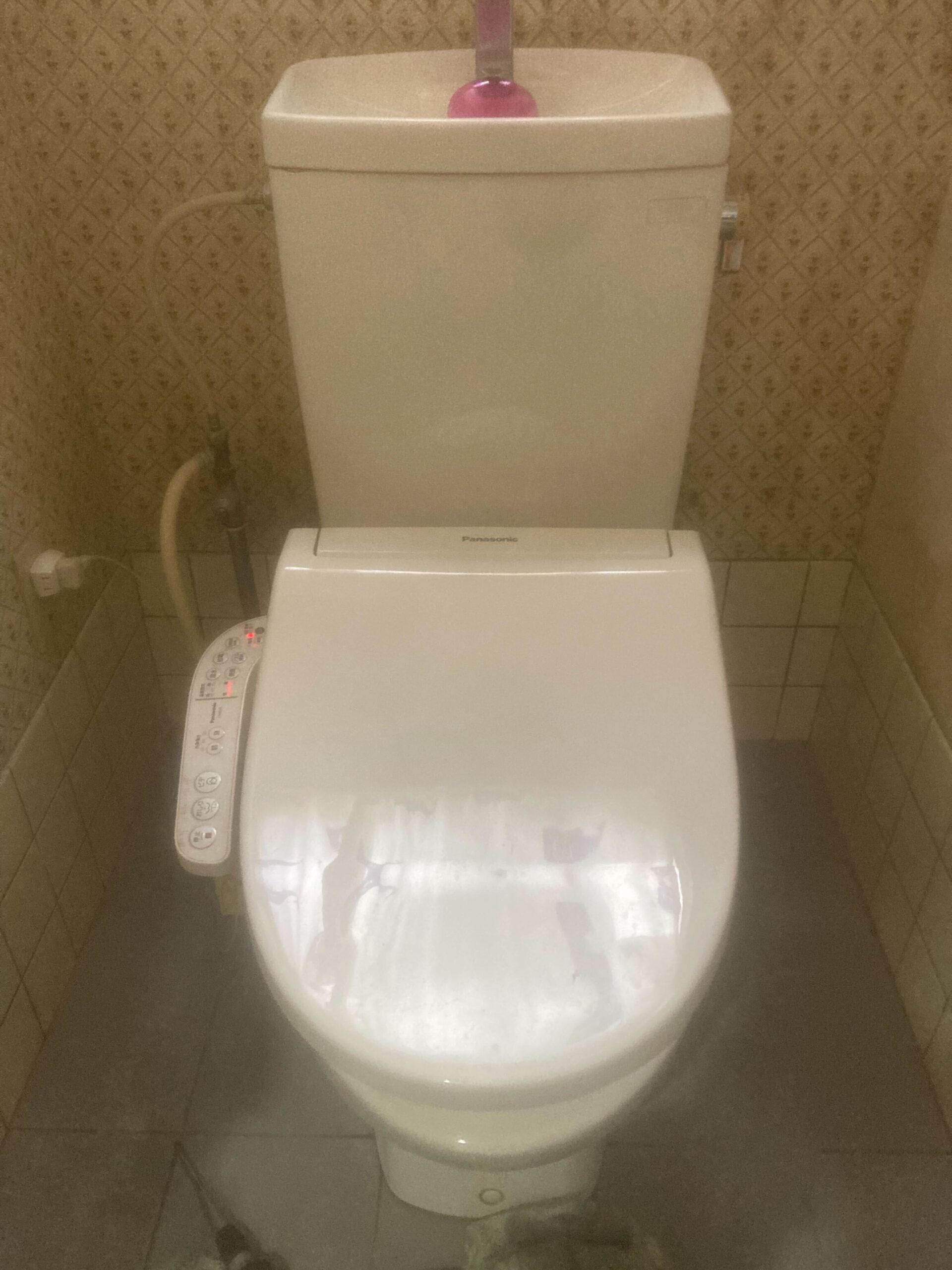 ウォシュレットの調子が悪い(勢いが調節できなくなっている・勢いが強すぎる)とご連絡をいただいたお客様宅へおうかがいしました。 調子が悪くなってきて、そろそろ新しくしたいとご希望がありましたので今回は新しく交換することに。 弊社でストックがあるタイプのものがちょうど合いましたので、ご連絡の次の日には交換することができました(^^♪