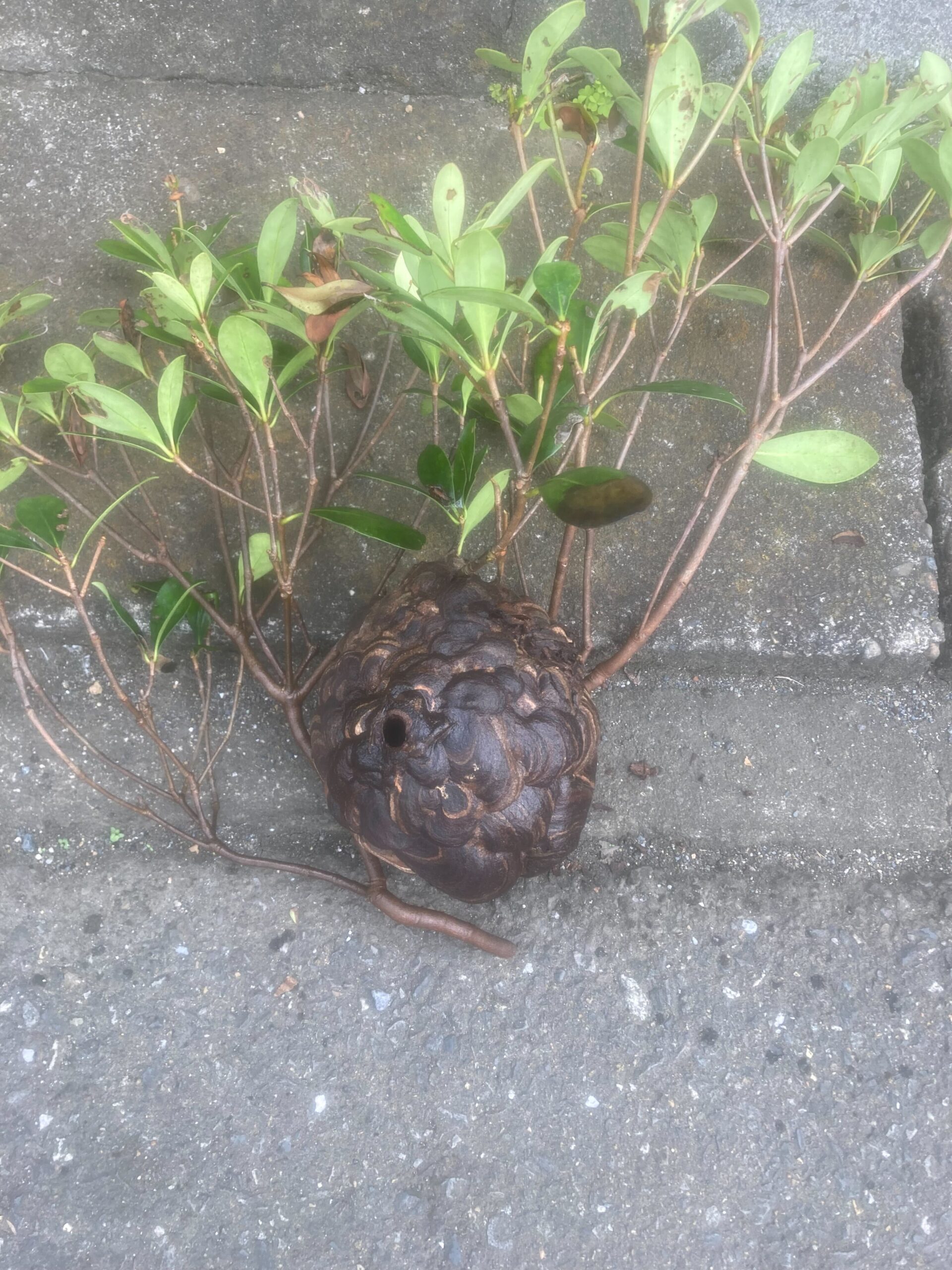 巣を撤去したあと、戻り蜂がいないこともしっかりと確認させていただきました。 玄関先の木ということもあり、お住まいの方も不安だったと思います。 安心してお過ごしいただければ幸いですm(__)m
