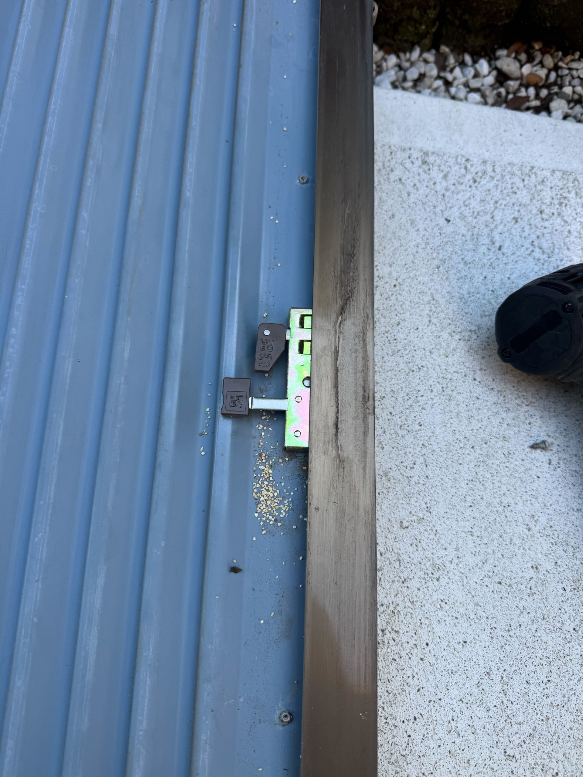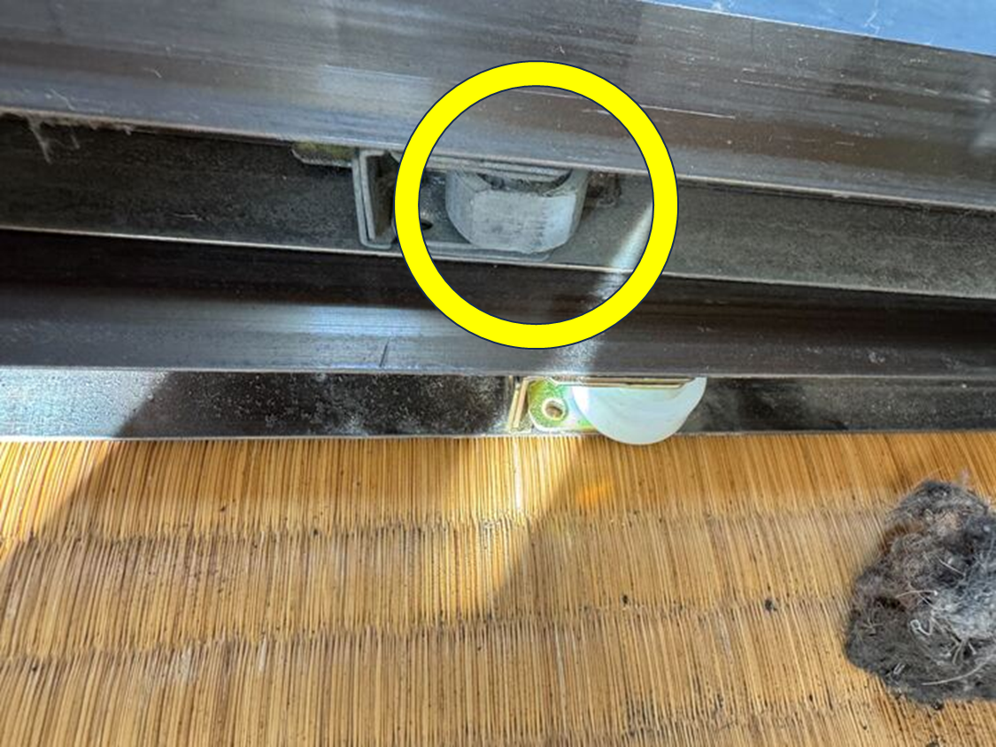 戸車が削れてしまったのか平らになっています。動かない原因はこの車輪でしたので、まずこちらを交換。 雨戸のカギも古くなっていて開閉しづらい状態でしたので、カギも新しくさせていただきました(^^♪ 戸車とカギ、どちらもスムーズに動くことを確認し、作業完了です!