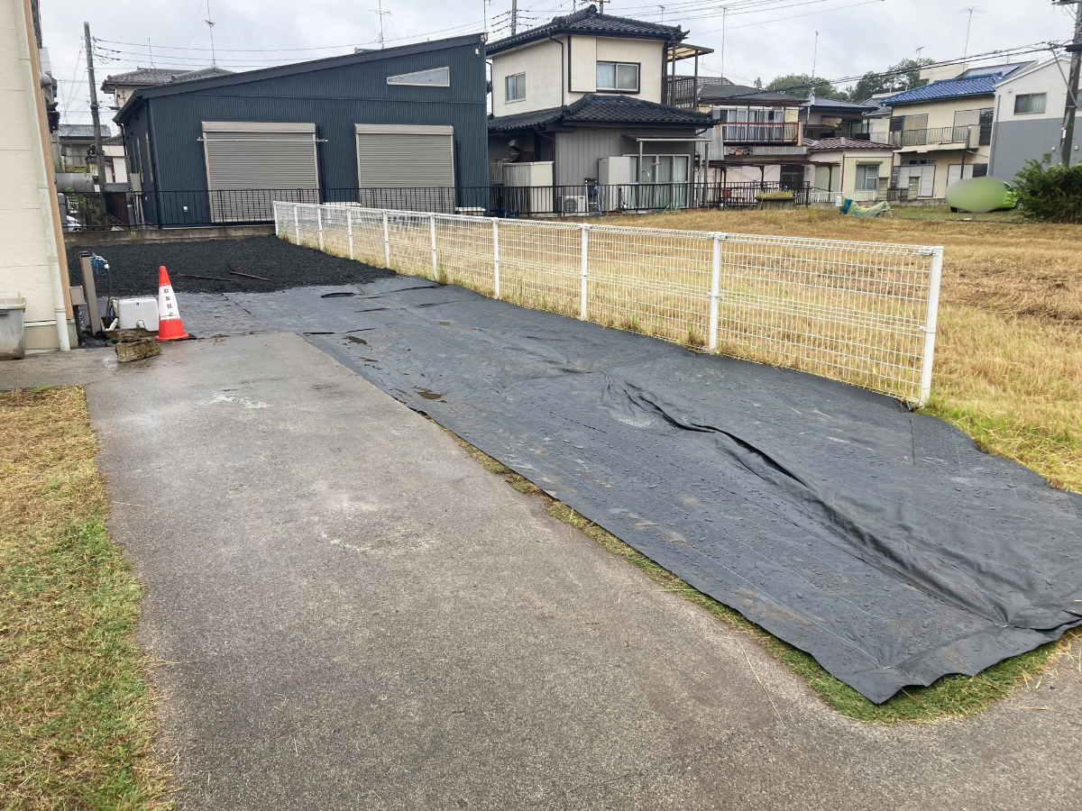 先月末に草刈作業をさせていただいた市内にある施設へおうかがいしました! 今回は、 ・草刈りをした土手部分へ防草シート張り ・同じく草刈をした駐車スペースへ防草シートを張り、その上に砕石を敷き、整地する といった作業をしてきました!(参考までに前回草刈をする前のお写真も載せさせていただきます)