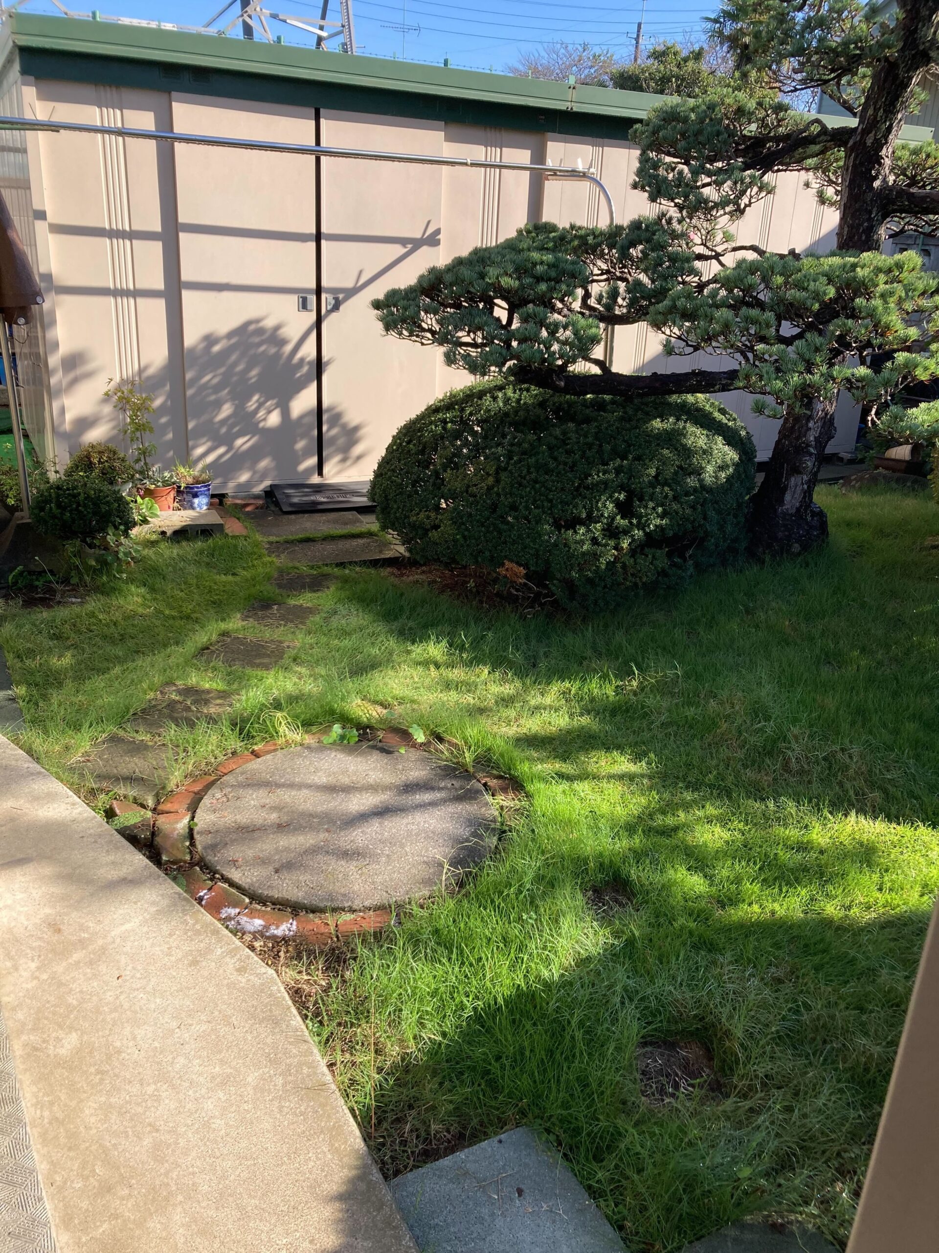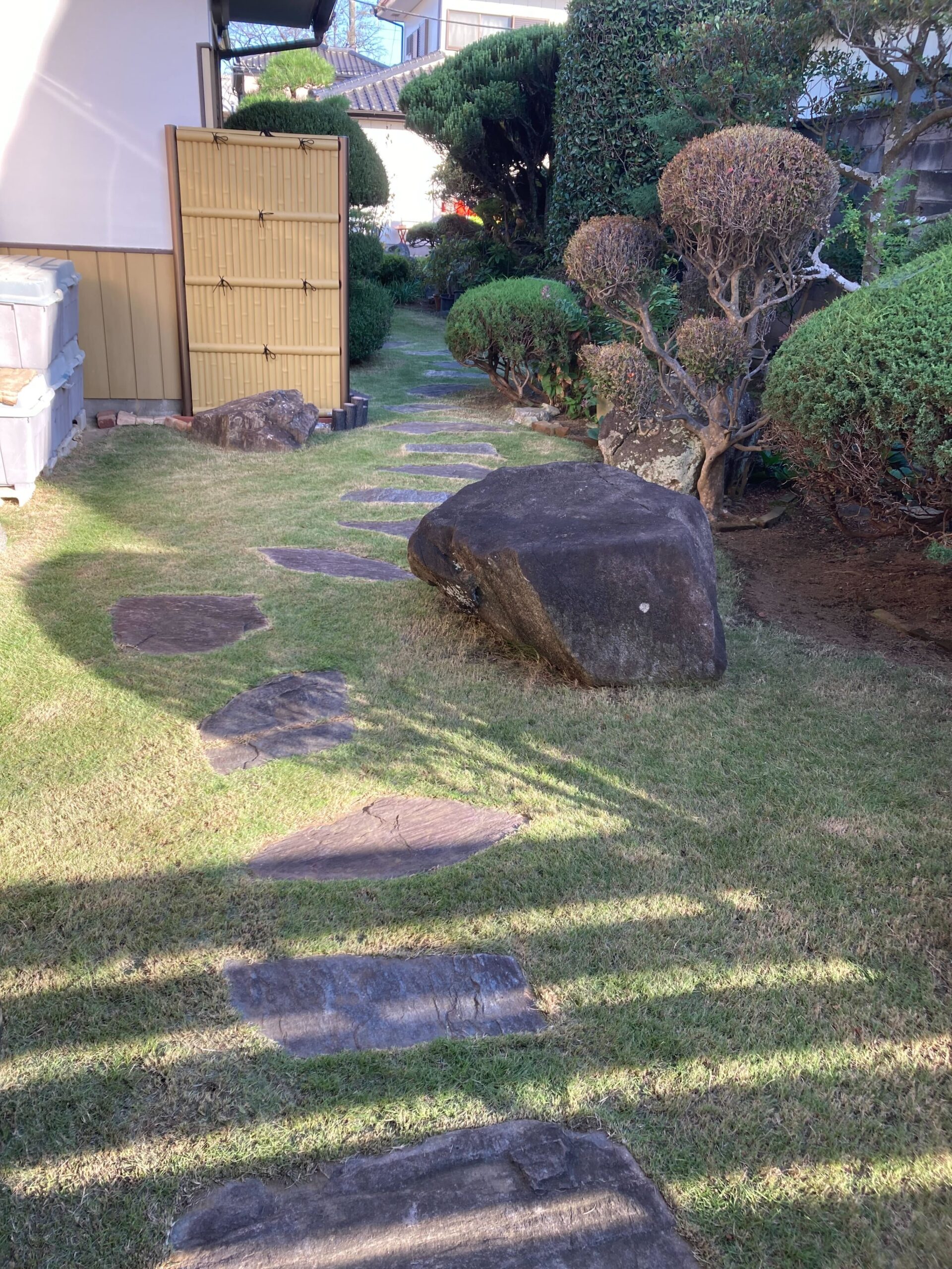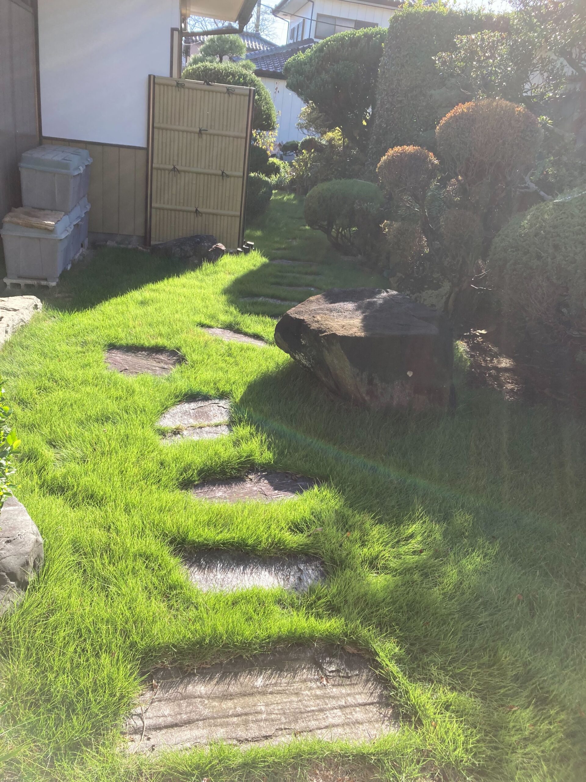 お庭の芝刈におうかがいしました! 飛び石や庭石、植木の周りなども細かく丁寧に刈ってきました。