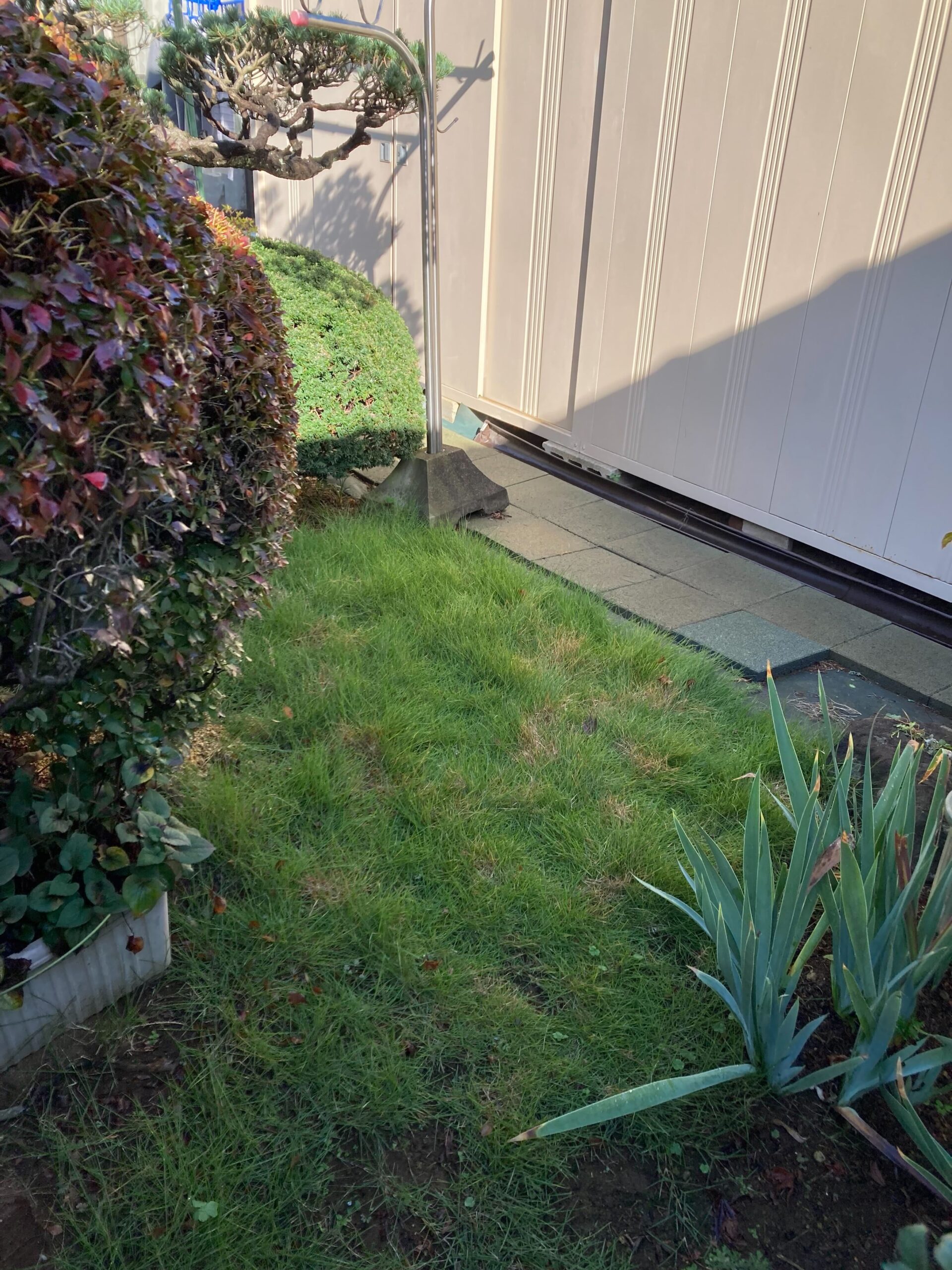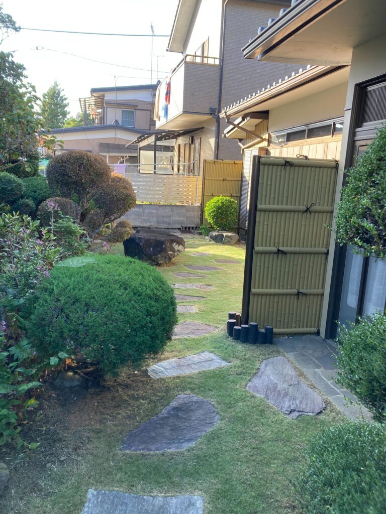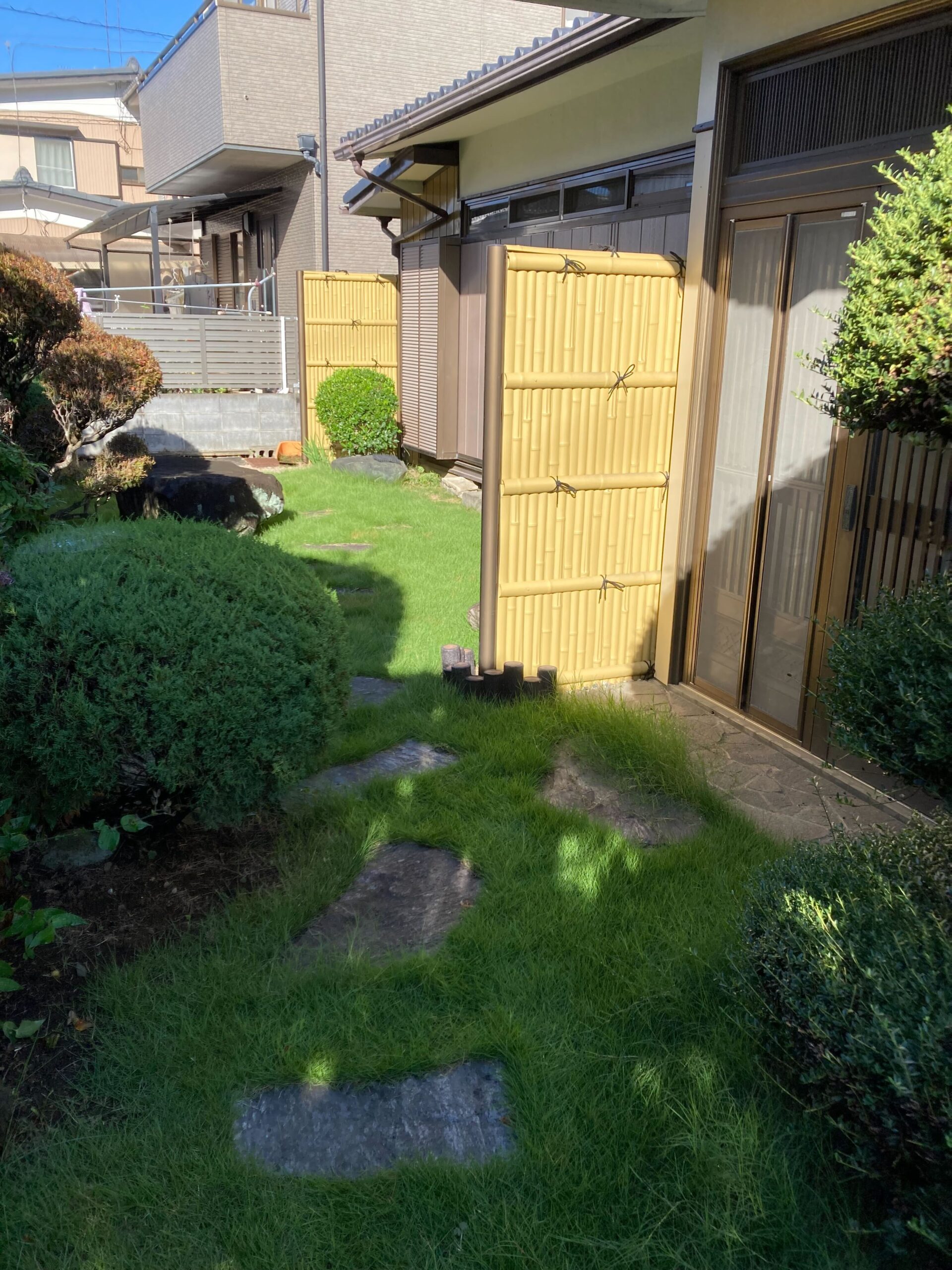 お庭の芝刈におうかがいしました! 飛び石や庭石、植木の周りなども細かく丁寧に刈ってきました。