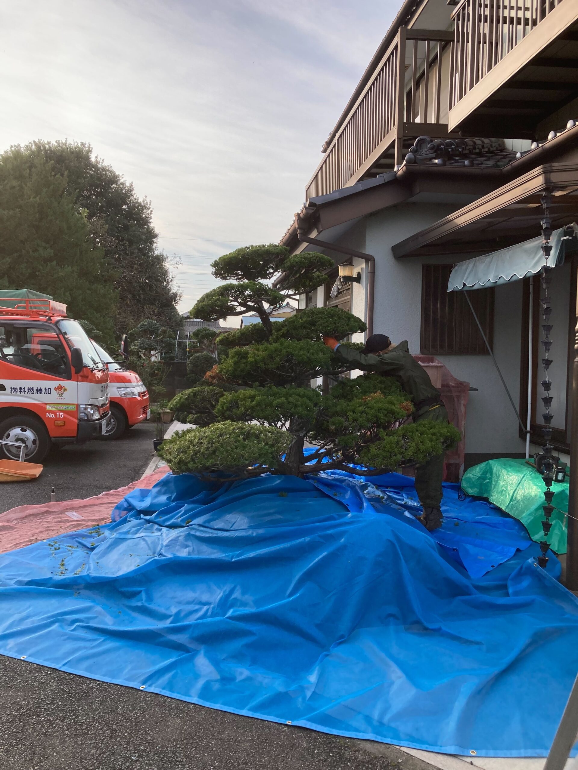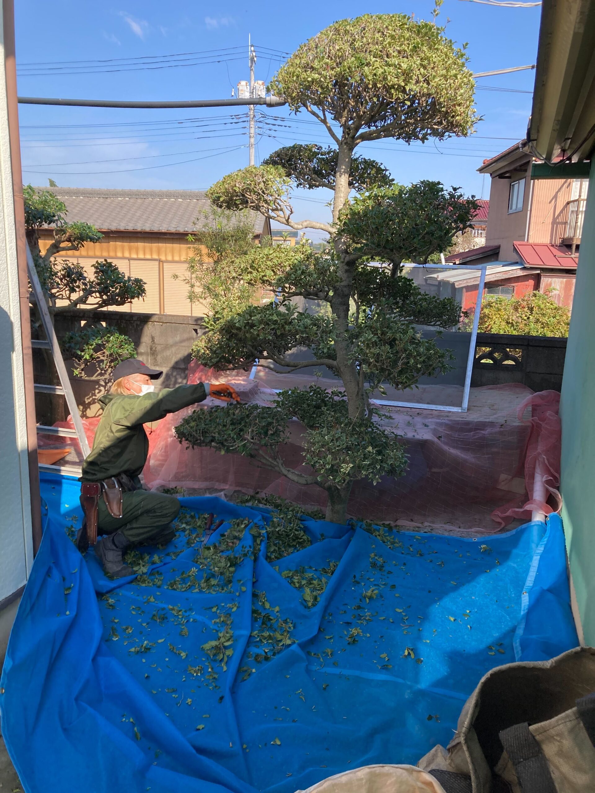 切った枝や葉が周りに散らからないよう、しっかりと対策を心がけています。 ぐるっと塀沿いに植えてある木も、お庭のメインになるような木もキレイに整えてきました! しっかりと手が入ると壮観ですね(^^♪