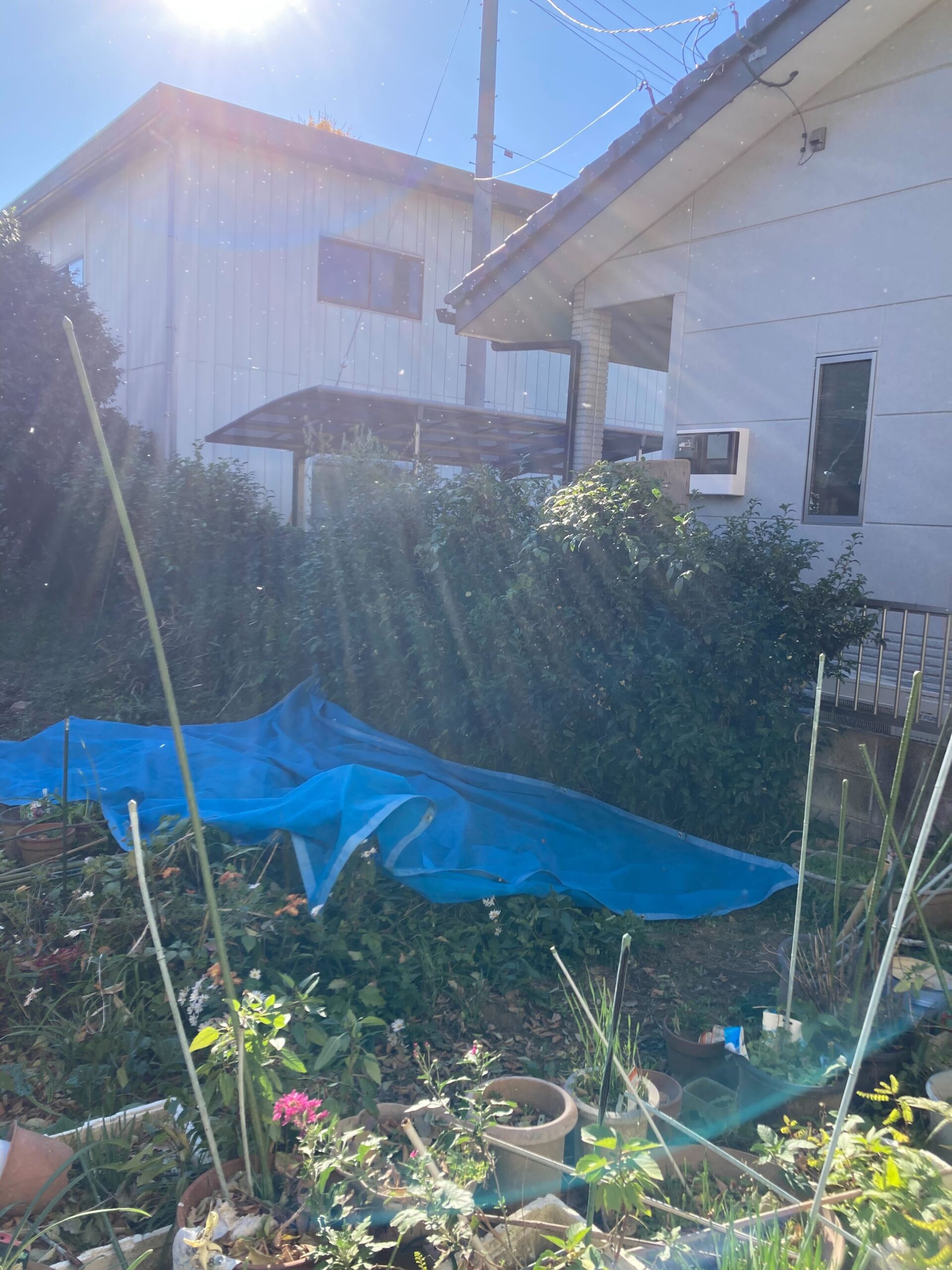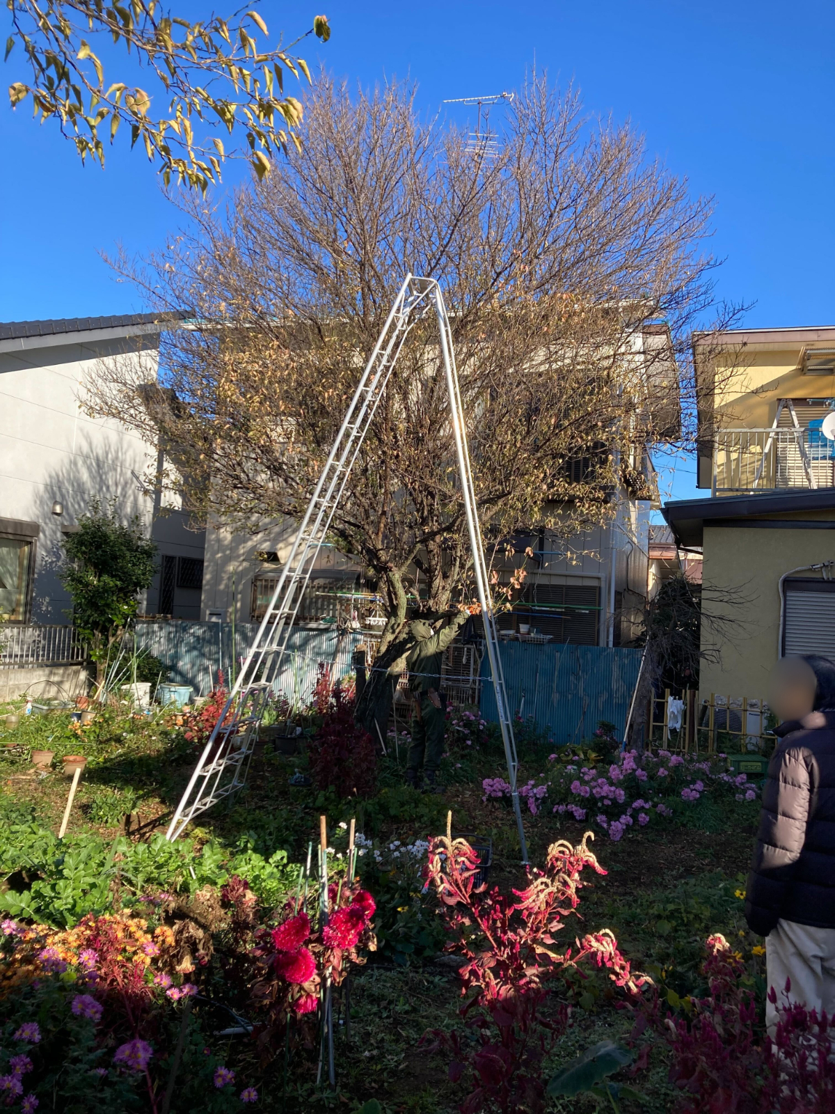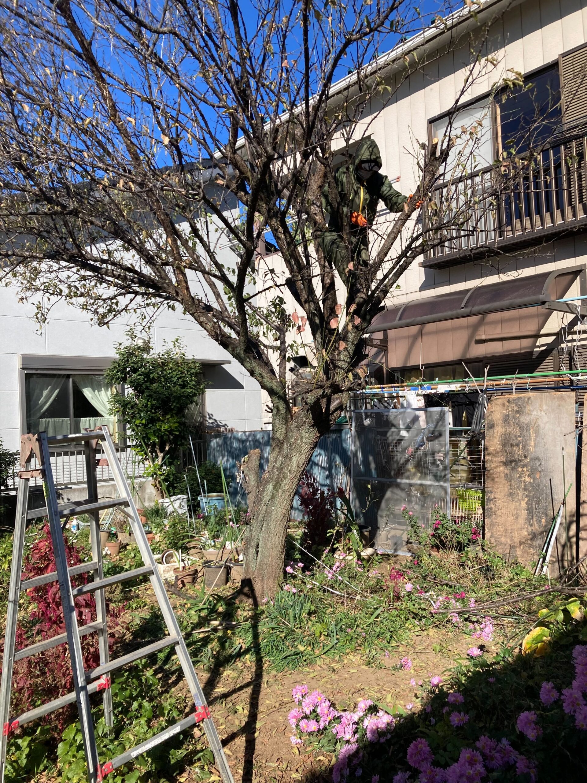 庭木の剪定におうかがいしました! お隣の家の樋に落ちた葉が溜まってしまう木があるのでその木をどうにかしたい…とご相談くださったお客様宅です。