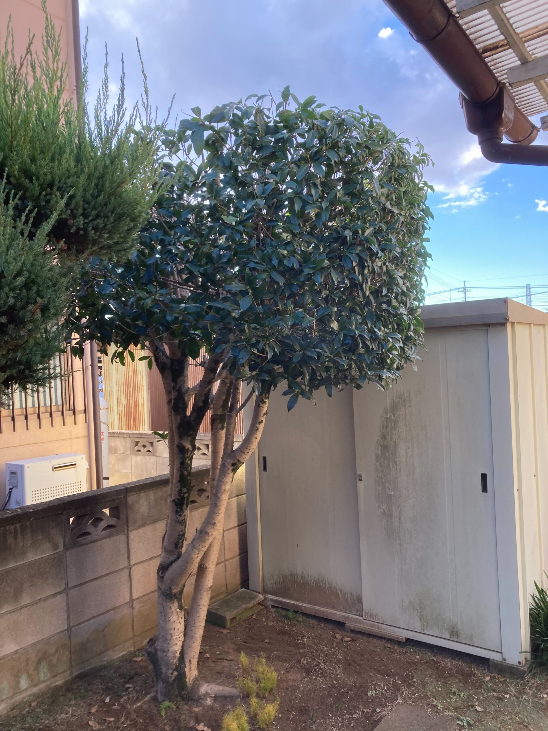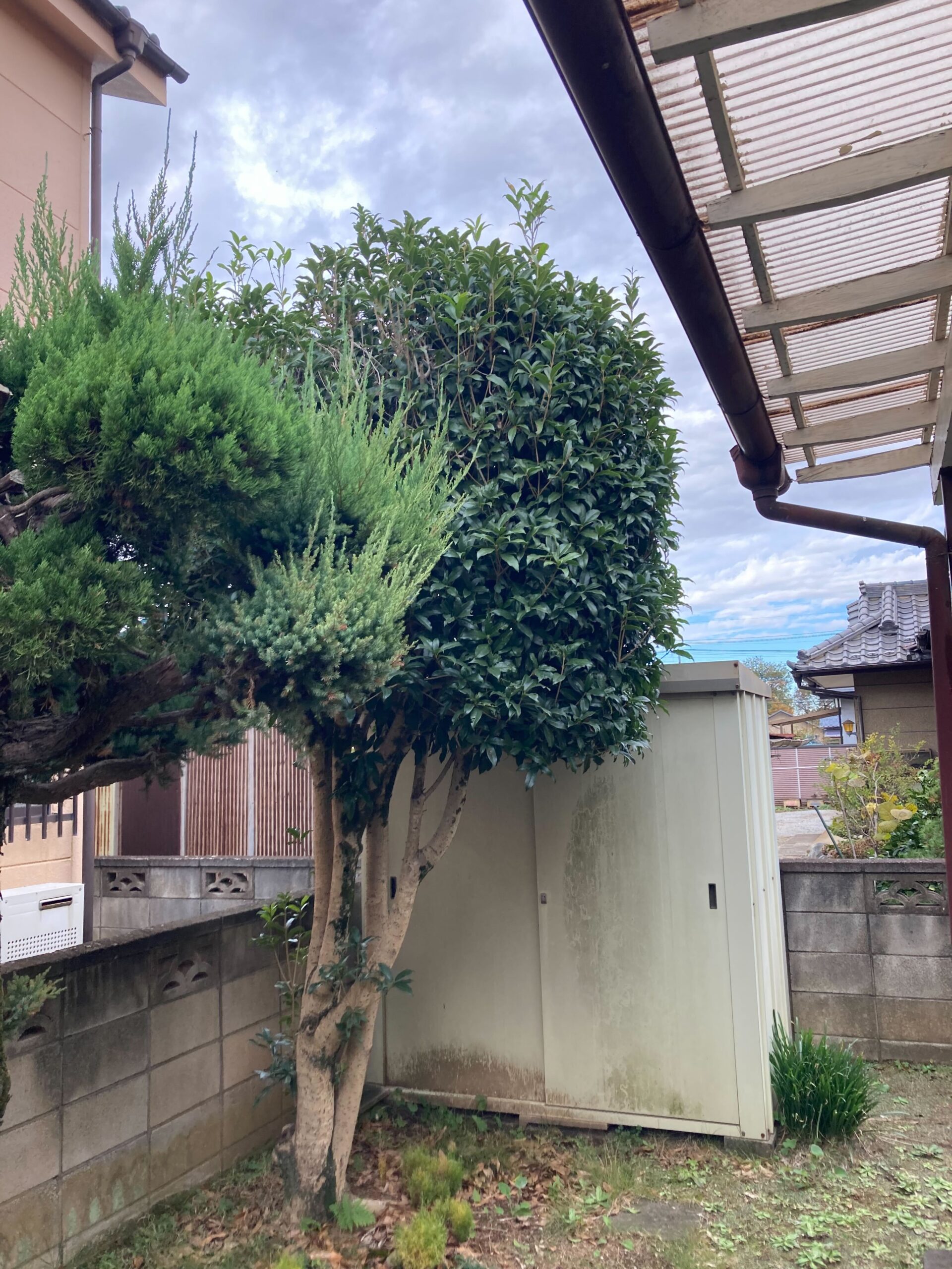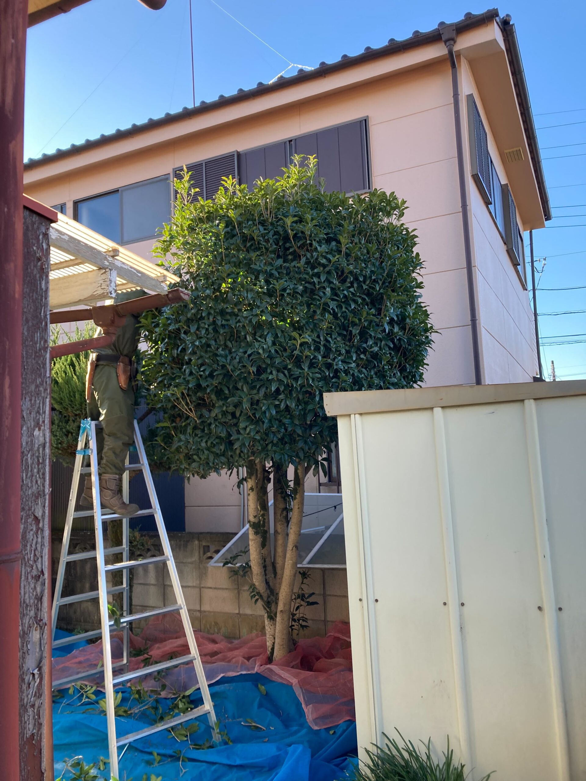 キンモクセイと玄関前の植木の剪定、芝刈におうかがいしました。