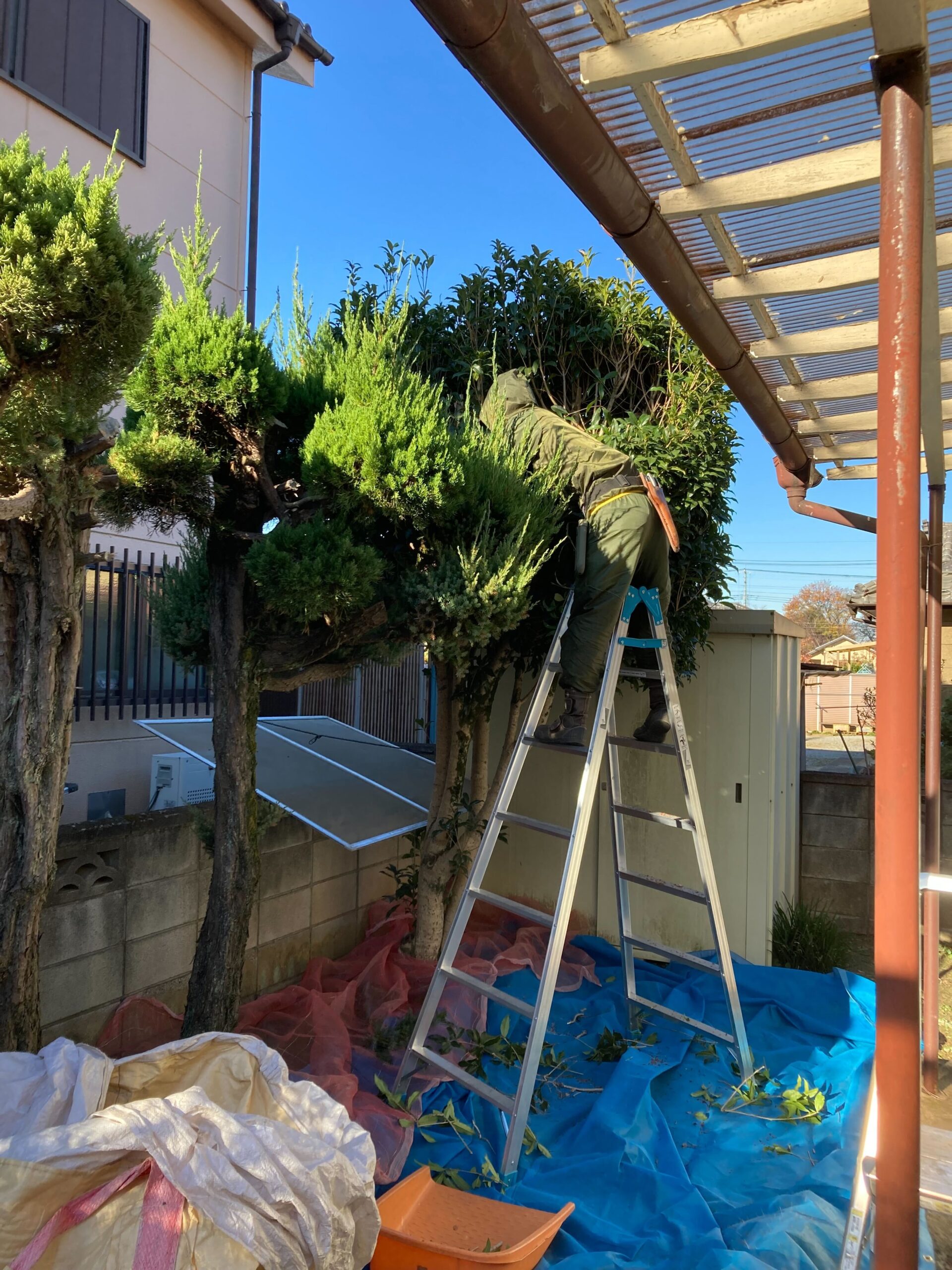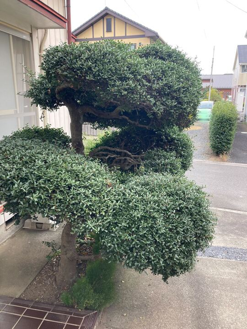 キンモクセイや植木は、枝や葉にボリュームがでていましたのでスッキリとしたシルエットに。芝ものびていた部分を短く刈りました♪ 日当たりや風通しもよくなり、虫の発生を抑える効果も期待できますね。
