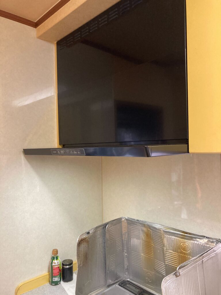 レンジフードの交換におうかがいしました。 レンジフードが煙を吸わなくなっている…とご相談をいただいていたお客様邸です。 20年と長い間お使いだったこともあり、すでに部品なども出なくなっていた為、今回は新しく交換となりました。