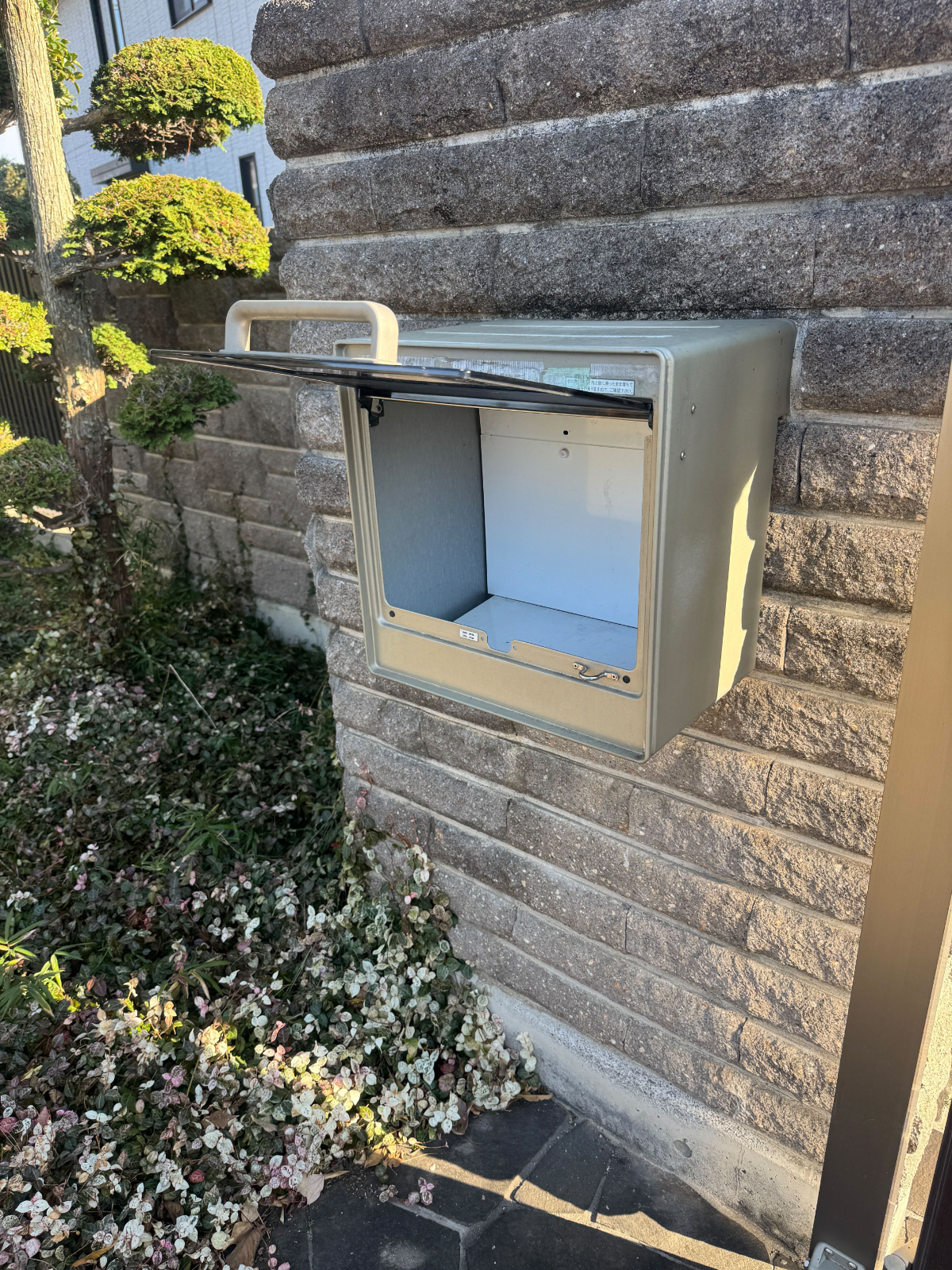 ポストがどこのメーカーのものか・フタなどの補修部品は取り寄せできるか…などを調べたところ、該当のポストの製造が昨年終了していることが判明。 ですが、同メーカーで寸法のあうフタがございましたので、少し見た目は変わりますがそちらに交換することをご提案いたしました。 お客様がご了承くださいましたので、入荷を経て、本日無事に交換完了です。