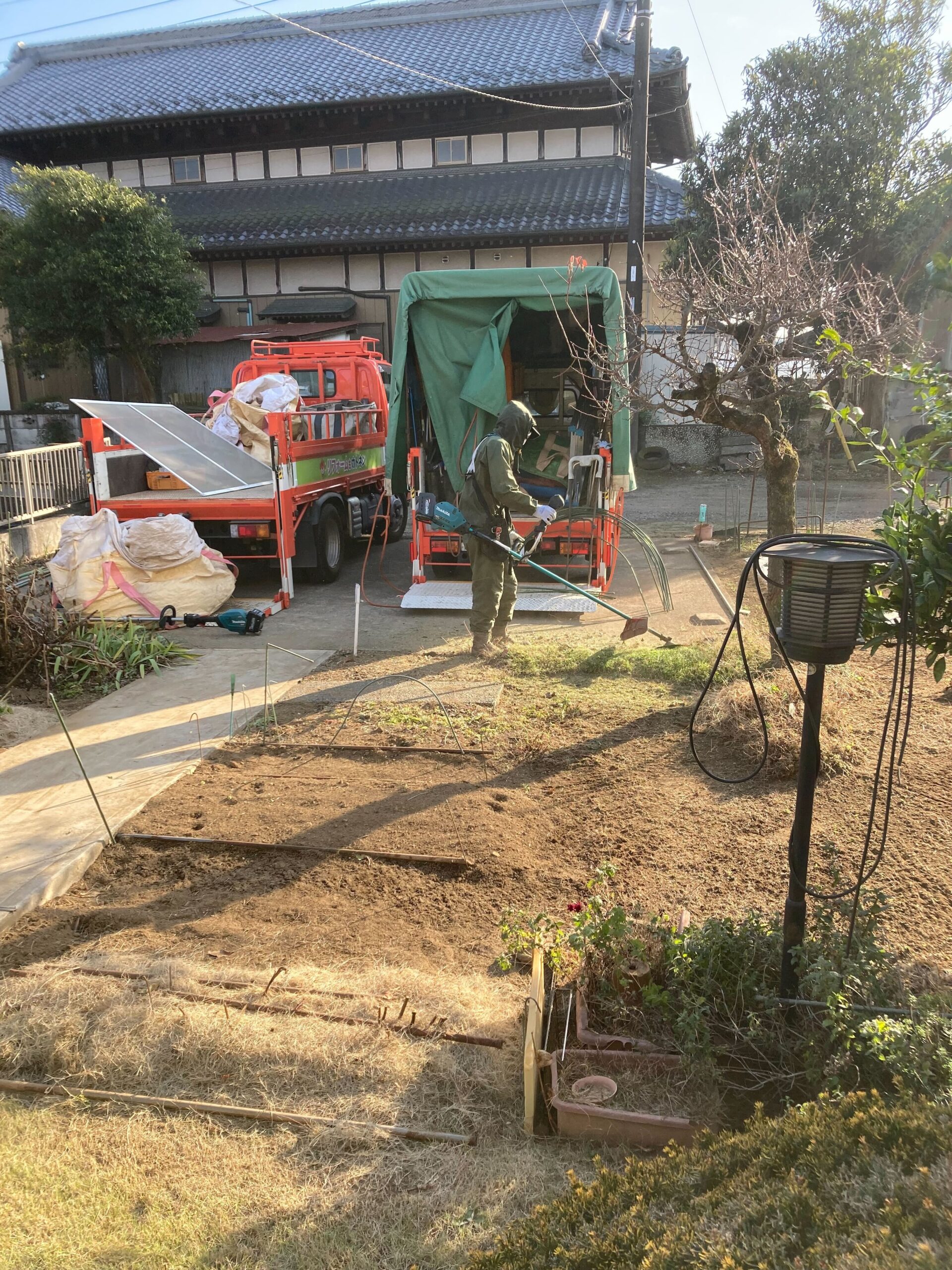 メンテナンスが行き届いていてキレイな状態ですが、すこし伸びてしまった芝や生えてきている草をしっかりと刈っていきます。 細かいところや端の方まできちんと仕上げ、全体のバランスを確認して作業完了です。