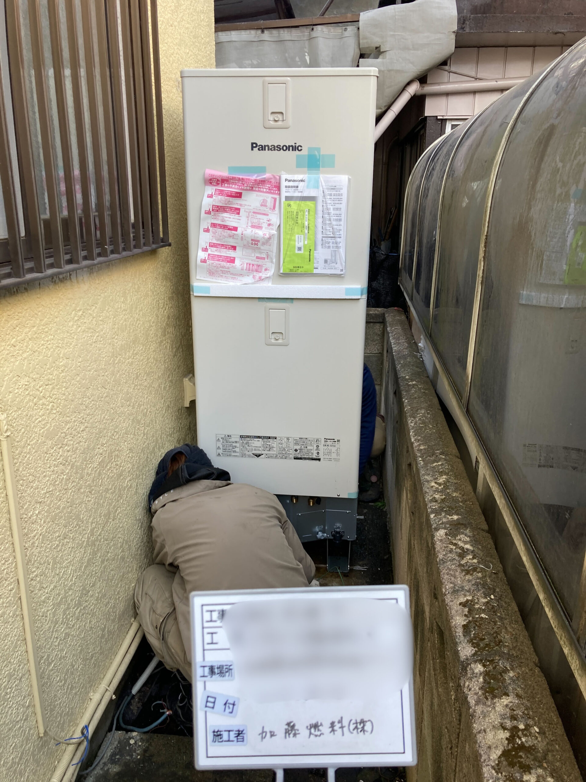 今回はエコキュートの交換工事にお伺いしました。 「使用年数が10年以上経過しているため、故障前に交換したい」と、ご相談をいただいていたお客様邸です。 現地調査のうえ、既存の配管や設置状況を確認し、給湯能力やご家族構成に合ったエコキュートへの交換をご提案いたしました。