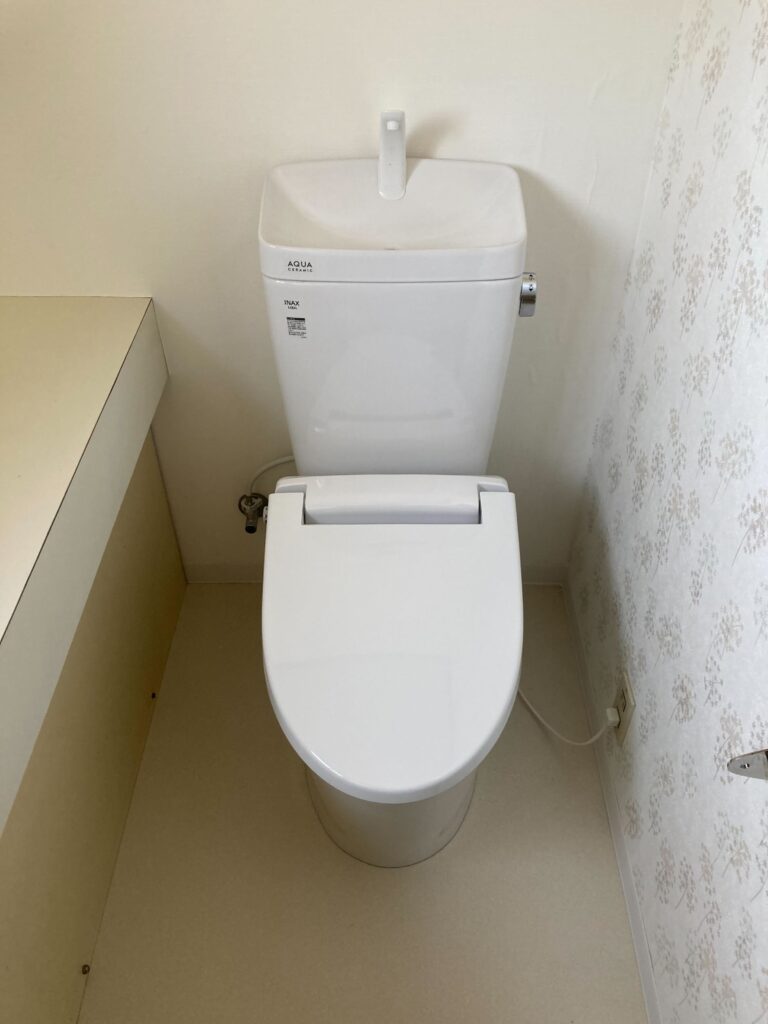トイレの本体交換工事を行いました。 (トイレ本体の撤去・設置を当社が担当し、床や壁クロスなどの内装工事は別の業者様が施工されています)