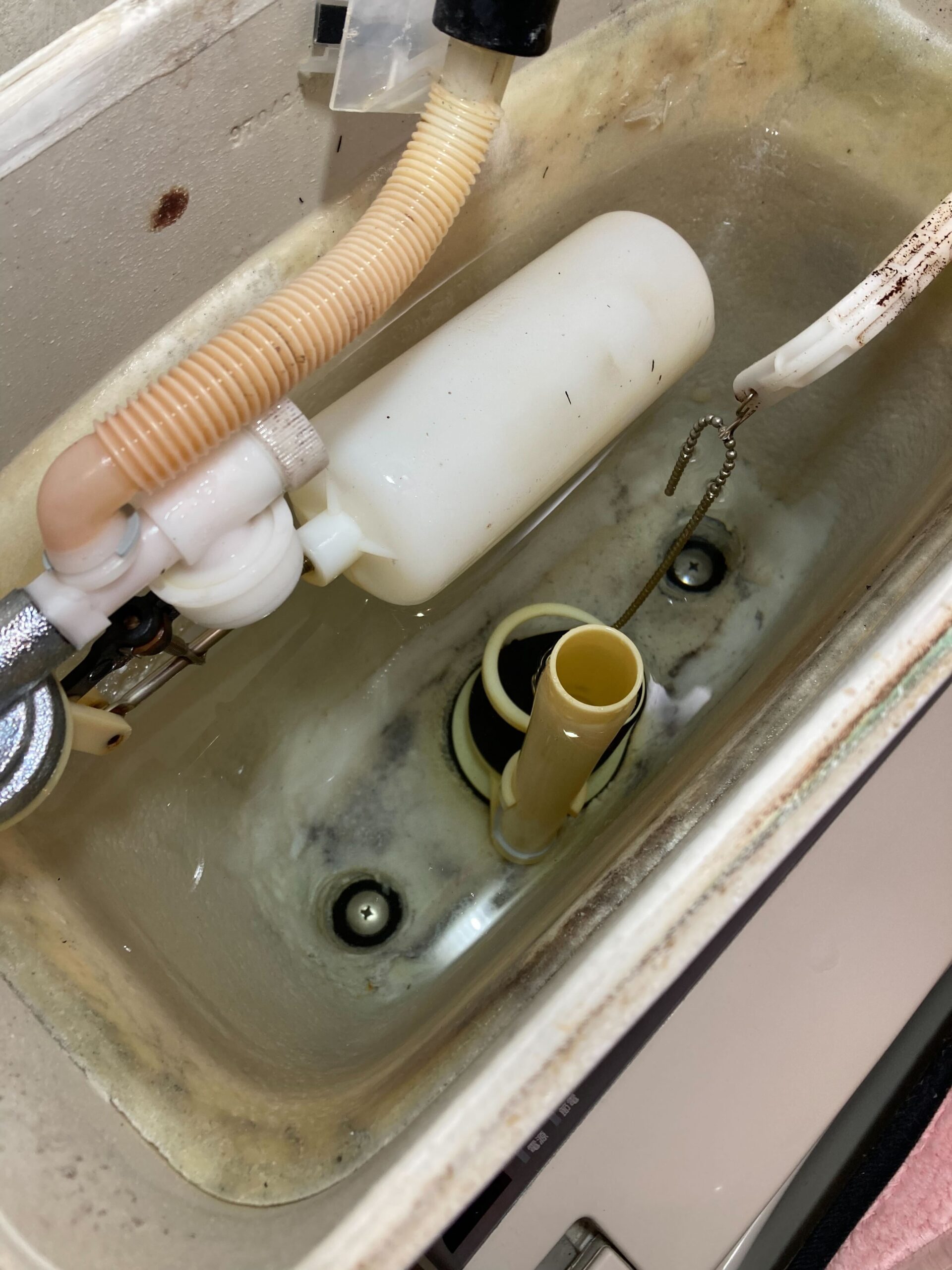 「水が流れっぱなしで、タンクに水が溜まらない」とのご相談をいただき、現地へ伺いました。 ご連絡があったのが年末だったため、まずはその日のうちに応急処置を行い、トイレをご使用いただける状態にしました。 年明けにあらためて状況を確認した結果、今回はトイレ本体の交換とさせていただきました。