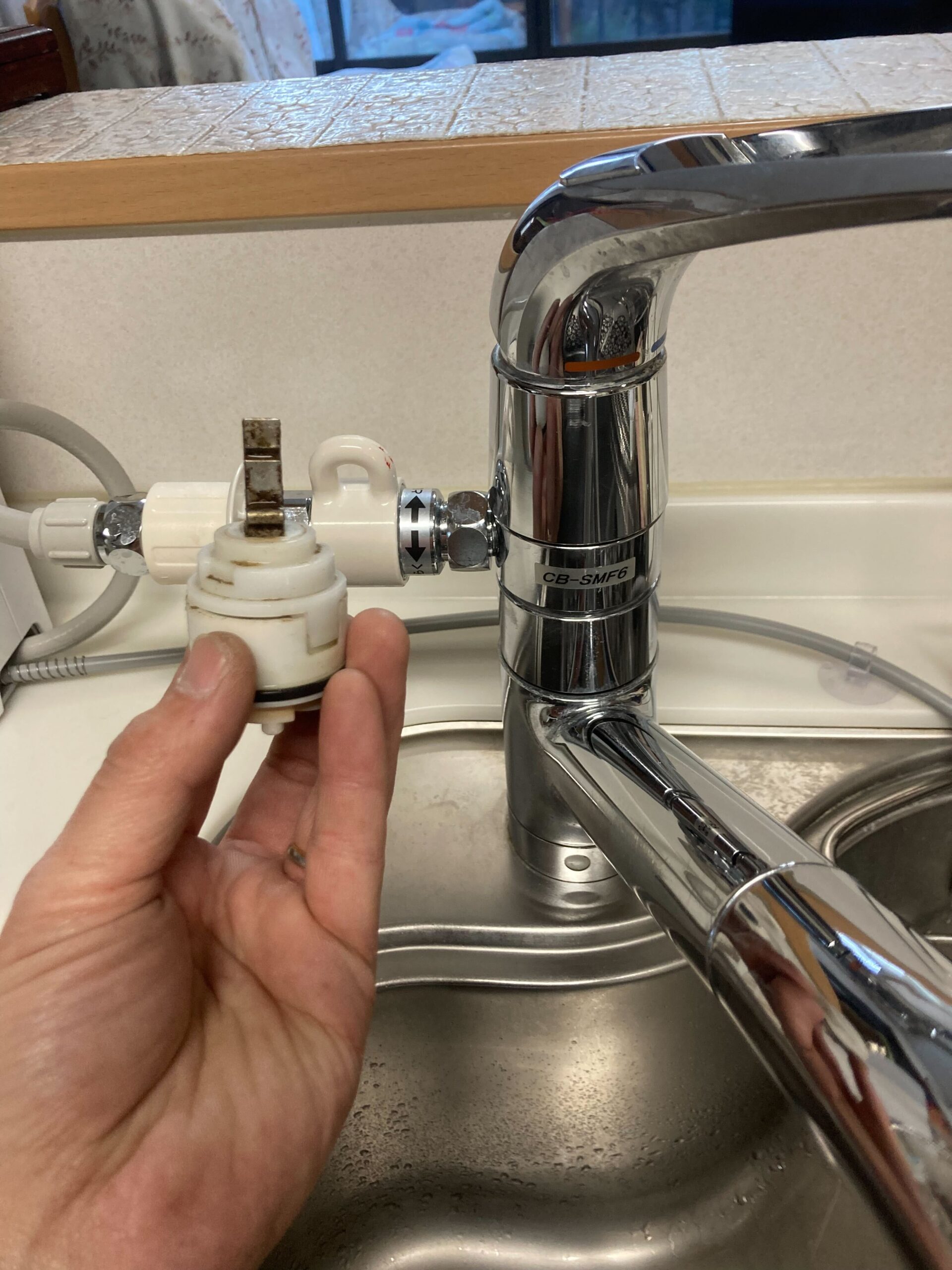 「レバーの操作が重い」「水の止まりが悪い」とのことでご相談をいただきお伺いしました! ご相談のあった水栓を確認したところ、内部カートリッジの劣化が原因でしたので、新しい部品へ交換を実施。 交換後はレバー操作がスムーズになり、水の出の問題も解消しました。 ※水栓カートリッジとは…キッチンや洗面、浴室などの蛇口(混合栓・単水栓)内部で水量・温度の調整、通水の開閉を担う部品です※