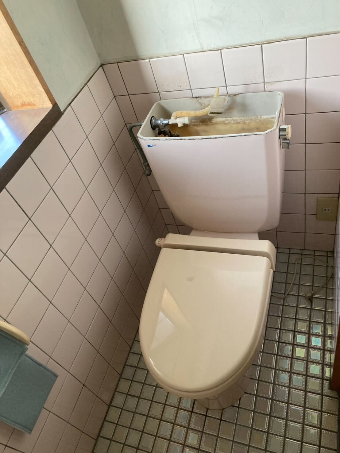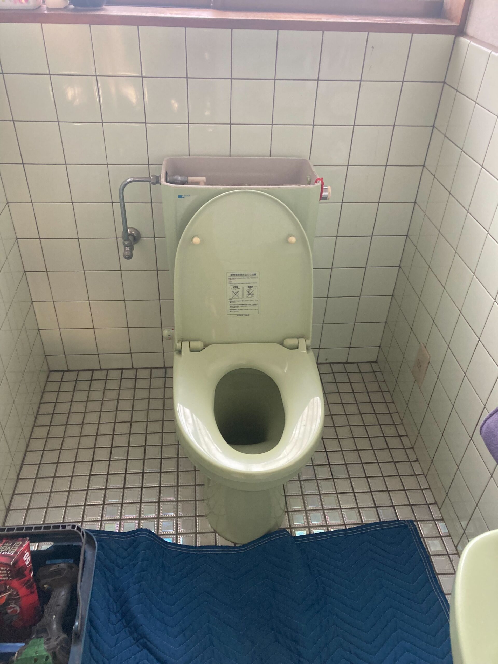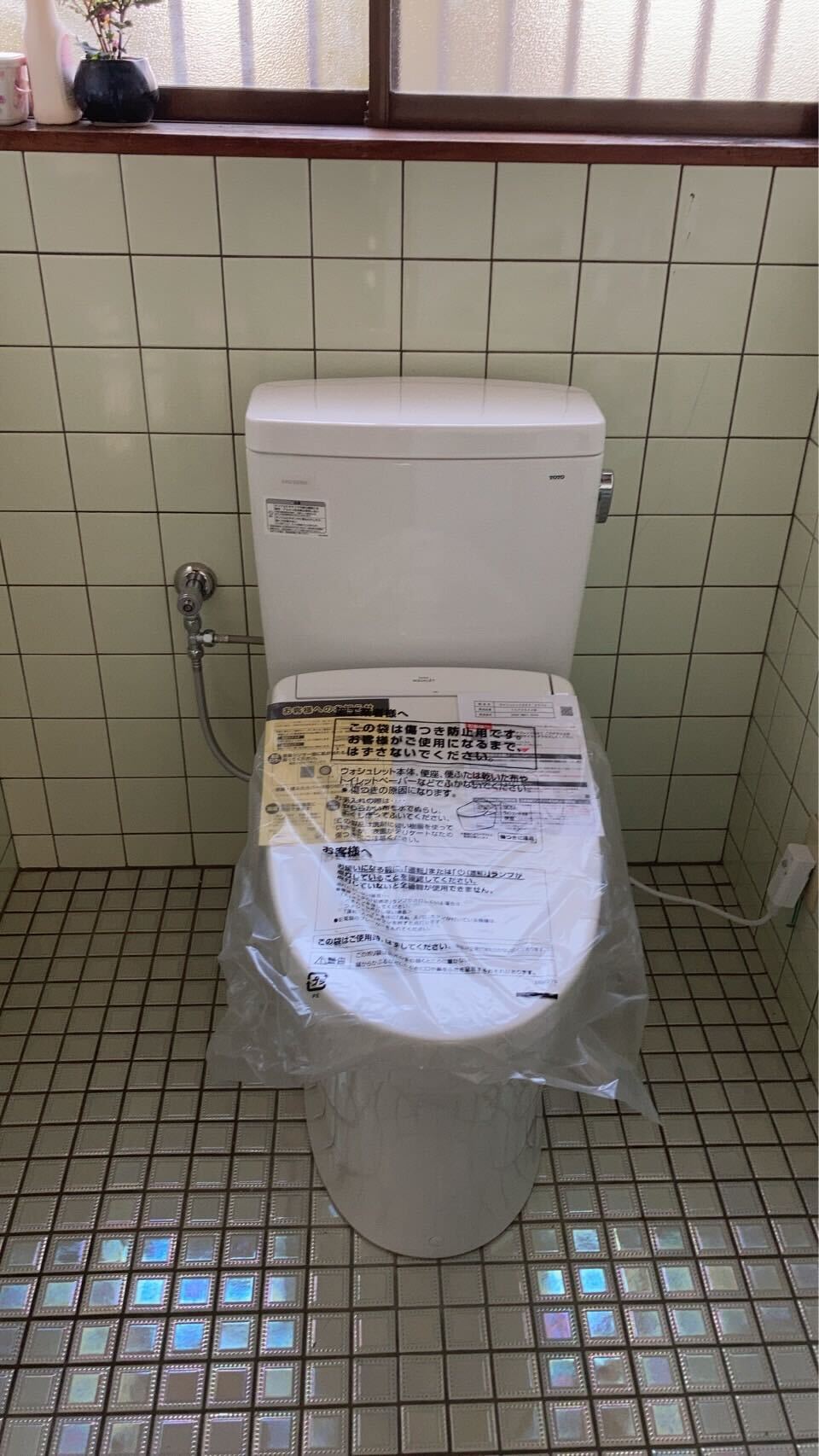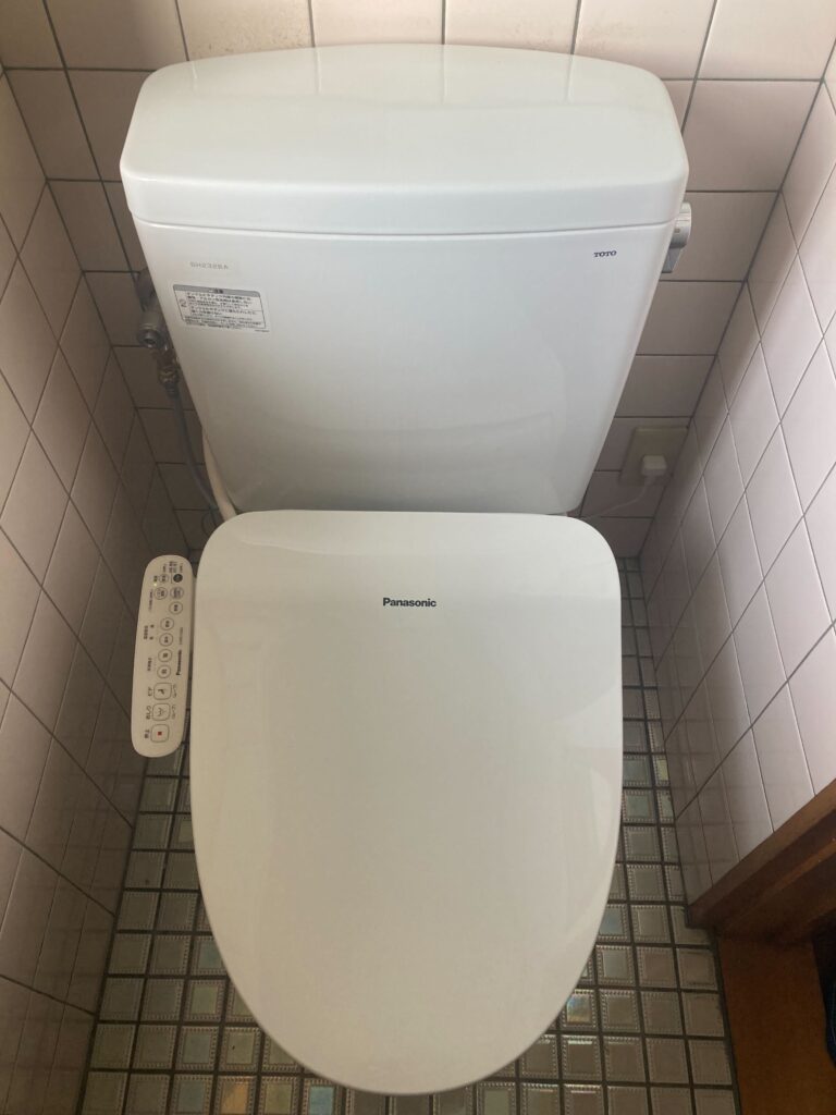 既存トイレの排水芯の位置と新しく設置するトイレの排水の位置の都合もありましたので、リモデルタイプのトイレをお選びいただき、さらに排水アジャスターを使用して対応しました。