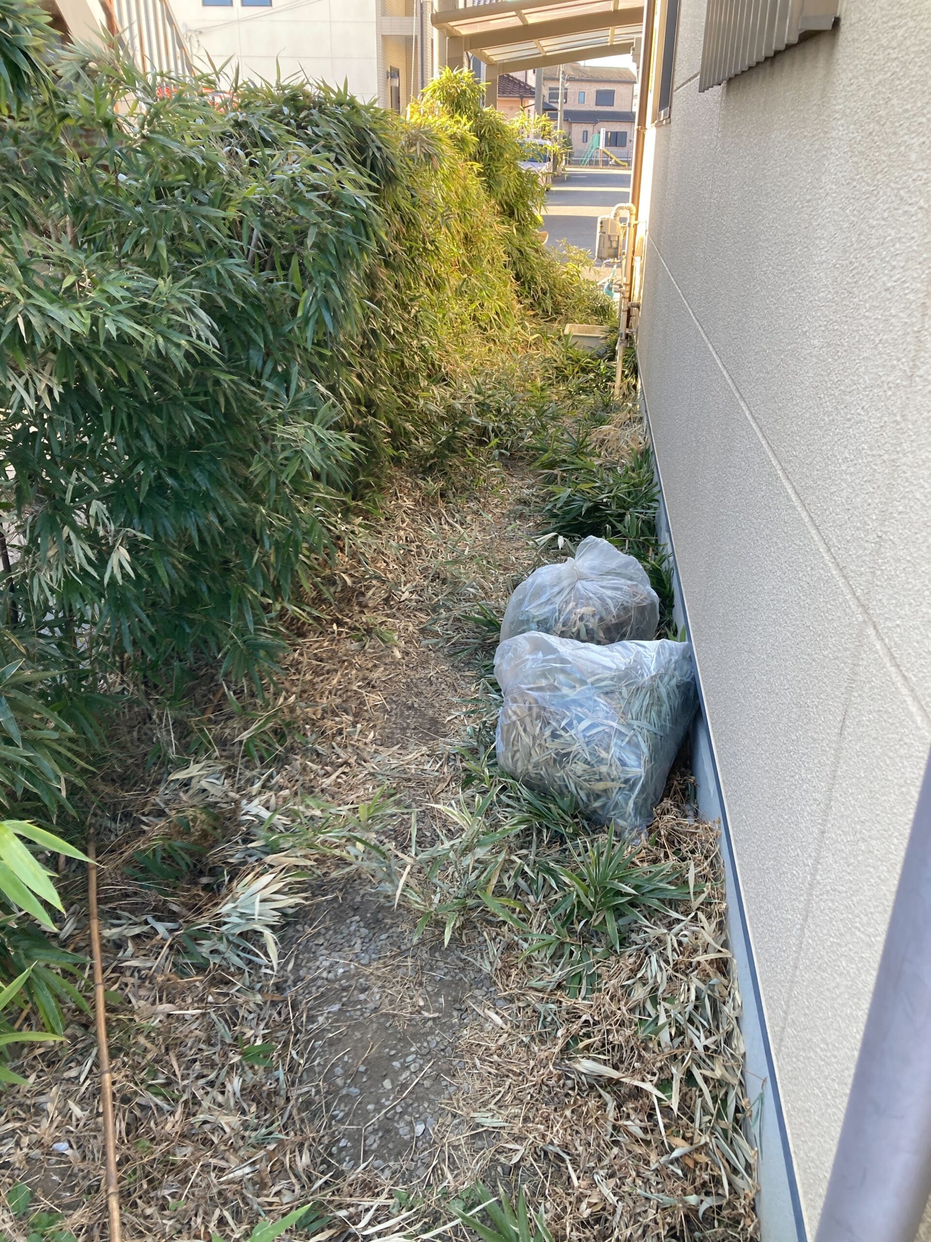 敷地内の草刈・笹刈作業と除草剤散布にうかがいました。 伸びていた雑草や笹をしっかりと丁寧に刈り、すっきりとした印象になりました。 青々と茂っていた笹や植木を整える事で見通しが良くなり、日当たりや風通しの改善、害虫の発生の抑止にも期待できますね♪