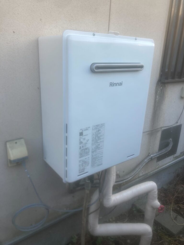 現場確認したところ、給湯器は製造から10年以上経過しており、部品の供給も終了している機種でした。 耐用年数の面から見ても修理は難しく、交換のタイミングとして適切だったため、今回は新しい給湯器へ交換いたしました。