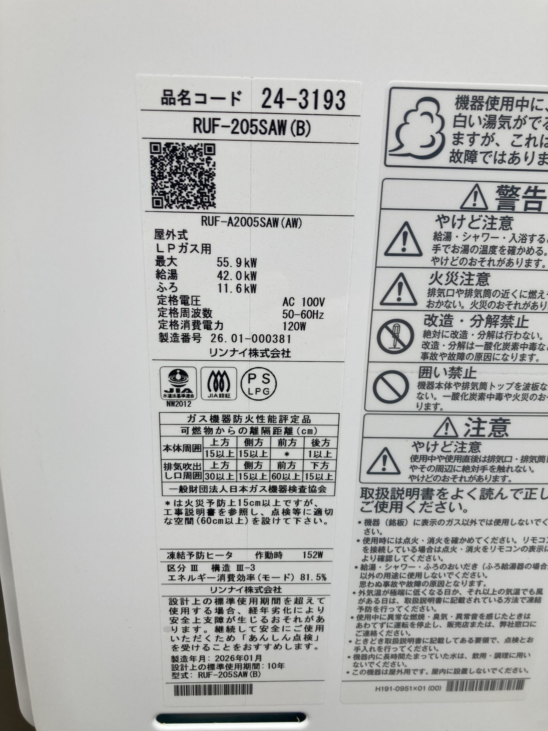 製造から15年以上経過していることもあり、今回は給湯器本体を交換とさせていただきました。
