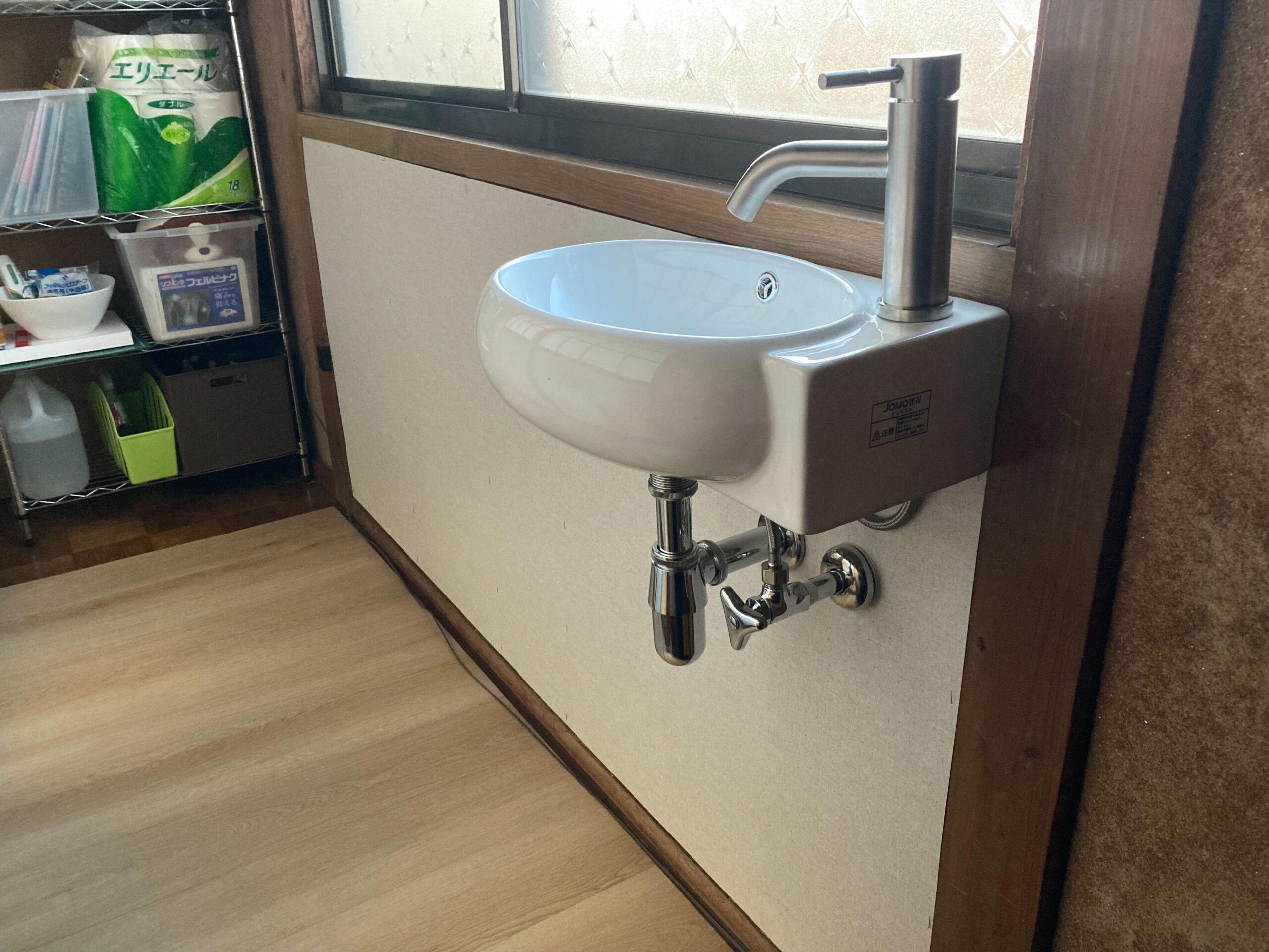 今回は壁の下地を補強して整えたうえで手洗い器を取り付け、水・お湯が使えるようになりました(*^^*)