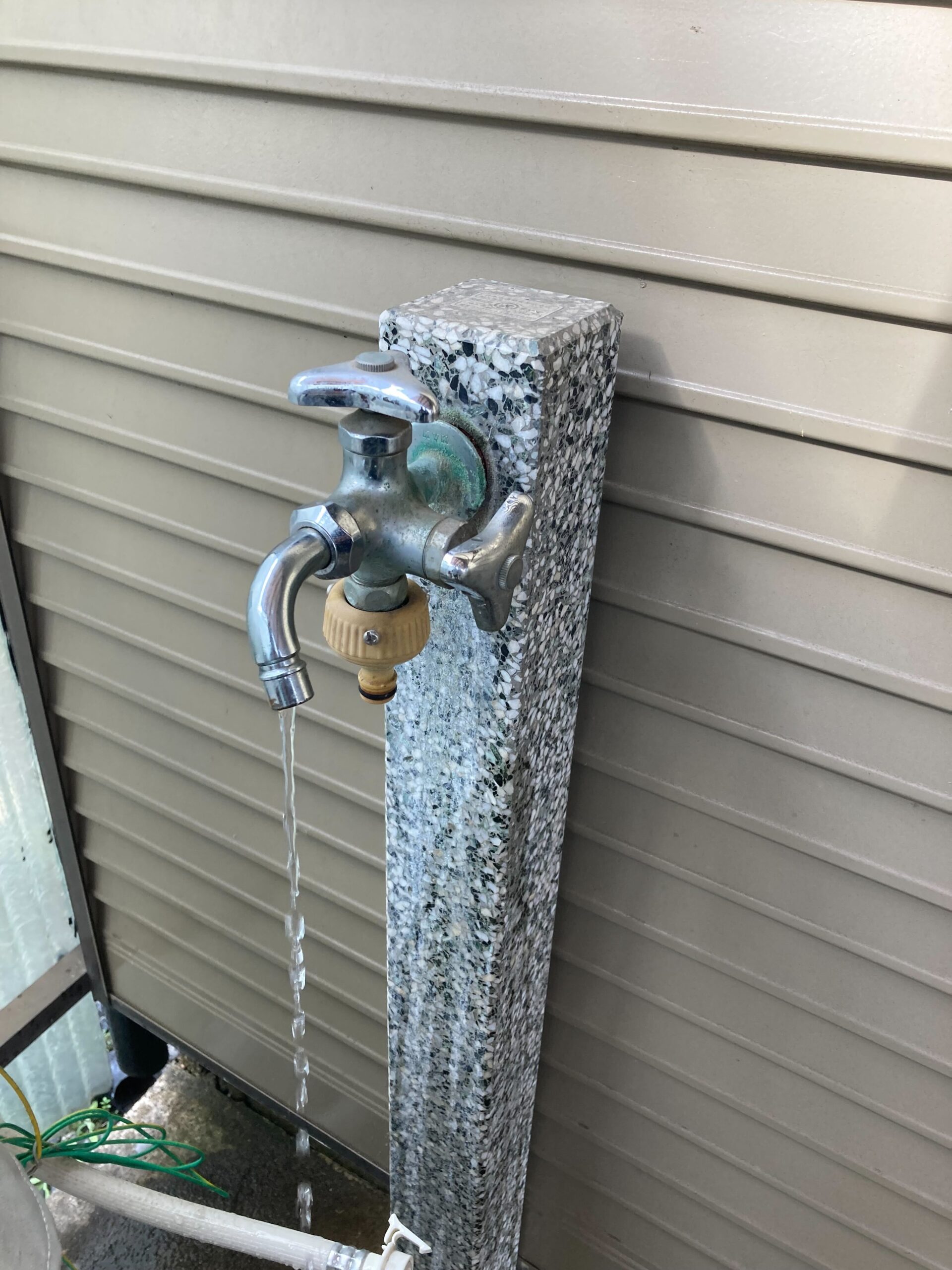 外水栓から水漏れがあるとご相談をいただき、お伺いしました。 設置から長い年月が経過していた為、本体の劣化も進んでいました。そちらを大家様に伝えたところ、これを機に部分補修ではなく水栓本体を新しいものへ交換することに。 既存の水栓を取外し、新しい水栓を取付。交換・通水後は水圧や水漏れをしっかりと確認して無事完了です!