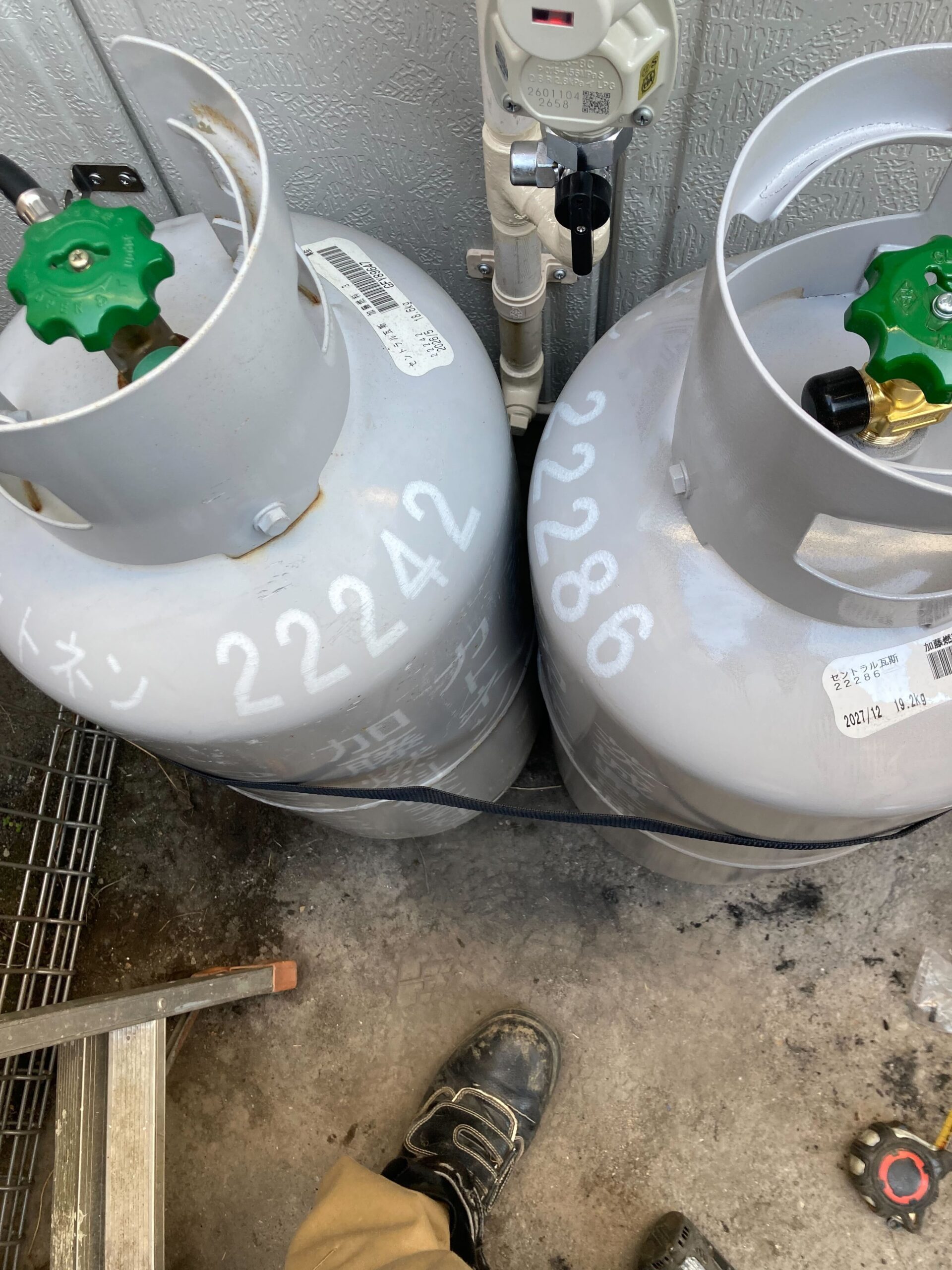 現地確認とお打ち合わせを重ね、今回新たにガス工事を実施。ガスボンベ・メーターの設置、湯沸器の取付までを対応いたしました。