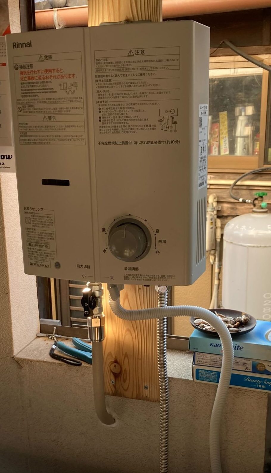 湯沸器取付後は点火試験をし、お湯がきちんと出ることを確認して作業完了です。