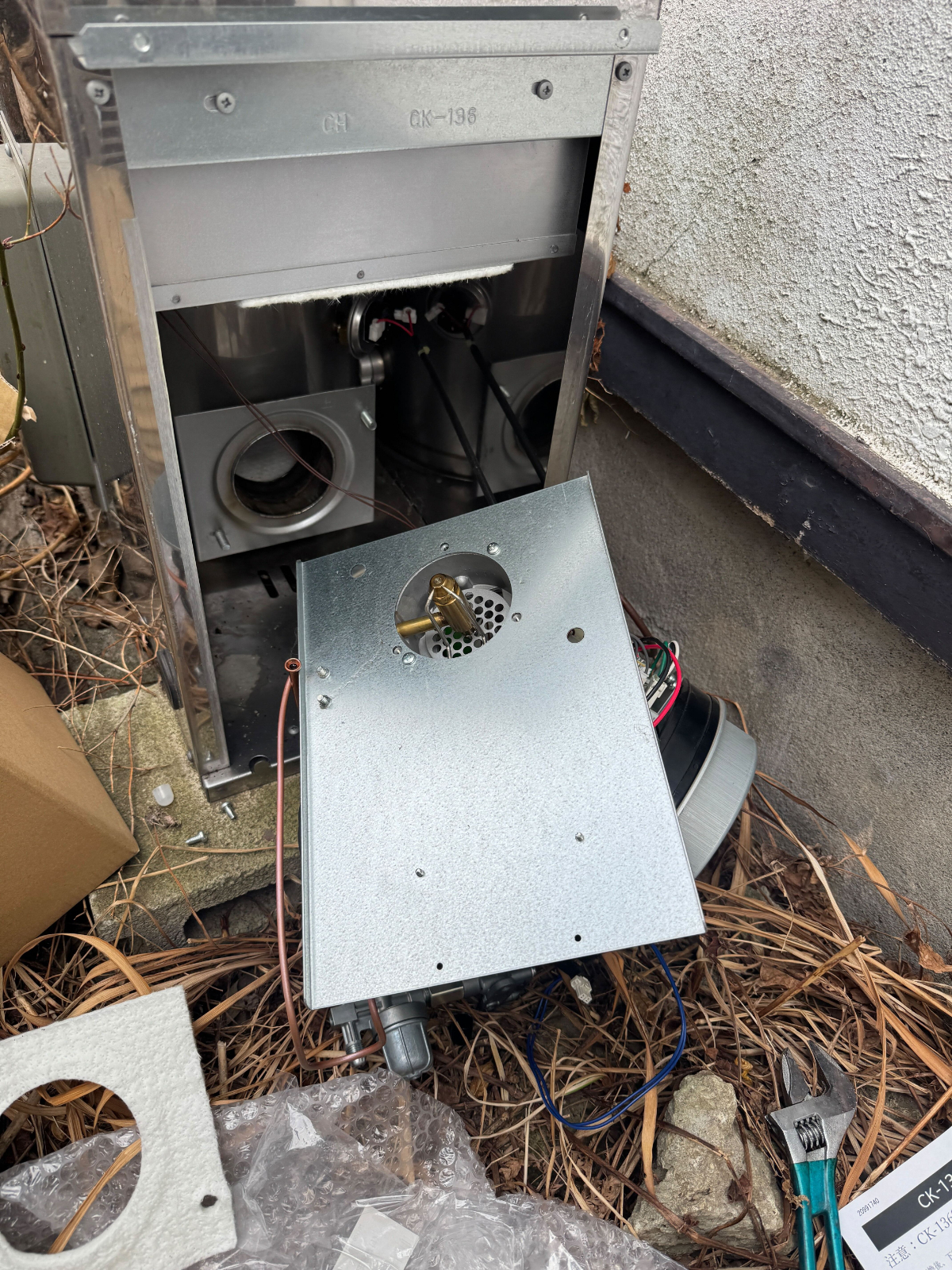 (※オイルタンクは結露したときや雨水が入ったときなどに水がたまることも。オイルタンクの水抜きを定期的にしないと給湯器具が不完全燃焼をおこしたり、故障する場合もございます。今回は水抜きをしていなかったようでかなり水が出てきました…。水抜きしてなかった要因の他にも数回空焚きをしてしまったことも故障の要因と考えられます)