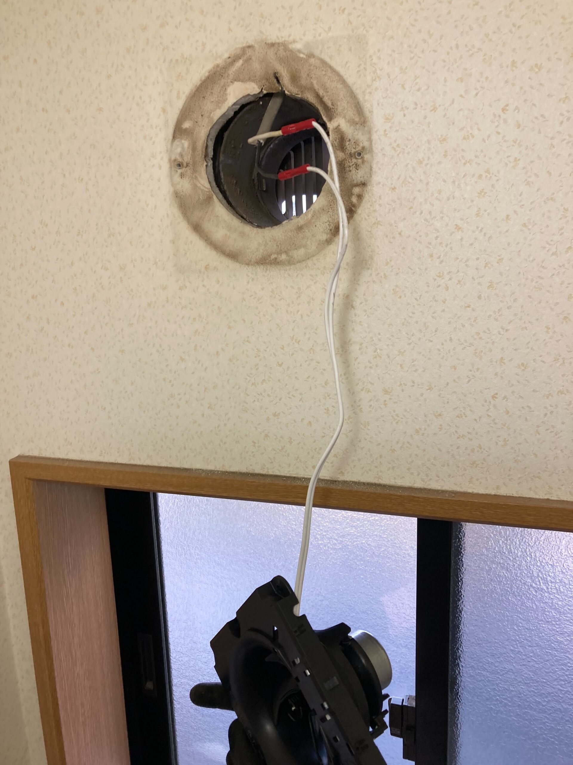 今回の施工では、既存の換気扇を取り外し、新しい換気扇へ交換いたしました。 取付状況や配線を確認しながら設置を行い、最後に動作確認をして作業完了となります。