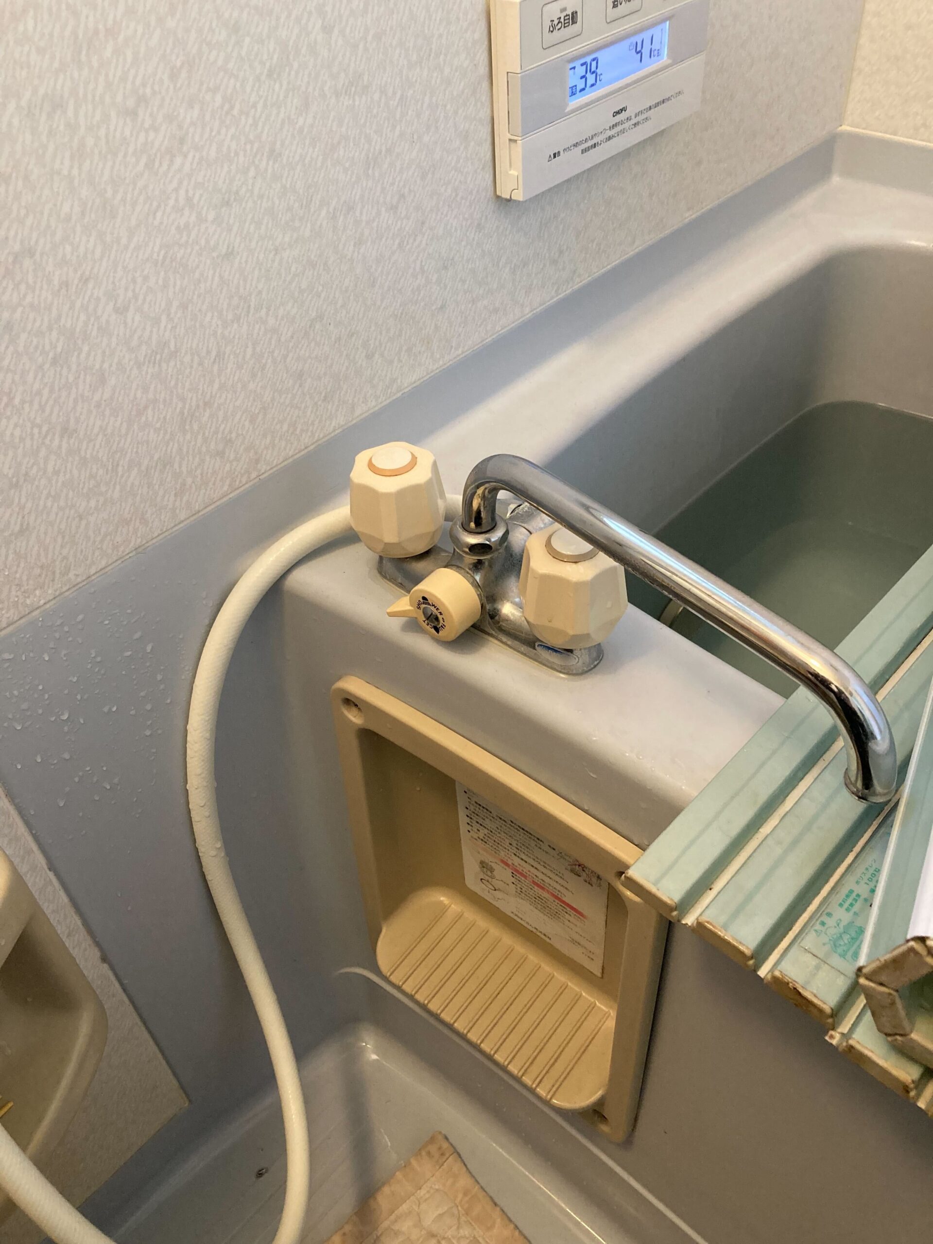 浴室の水栓から水漏れがあるとご相談をいただき、おうかがいしました! 実際に現場で確認してみると、経年による水栓本体の故障が原因での水漏れと分かりましたので、今回は新しく交換となりました。 (※大家様には許可をいただいております)
