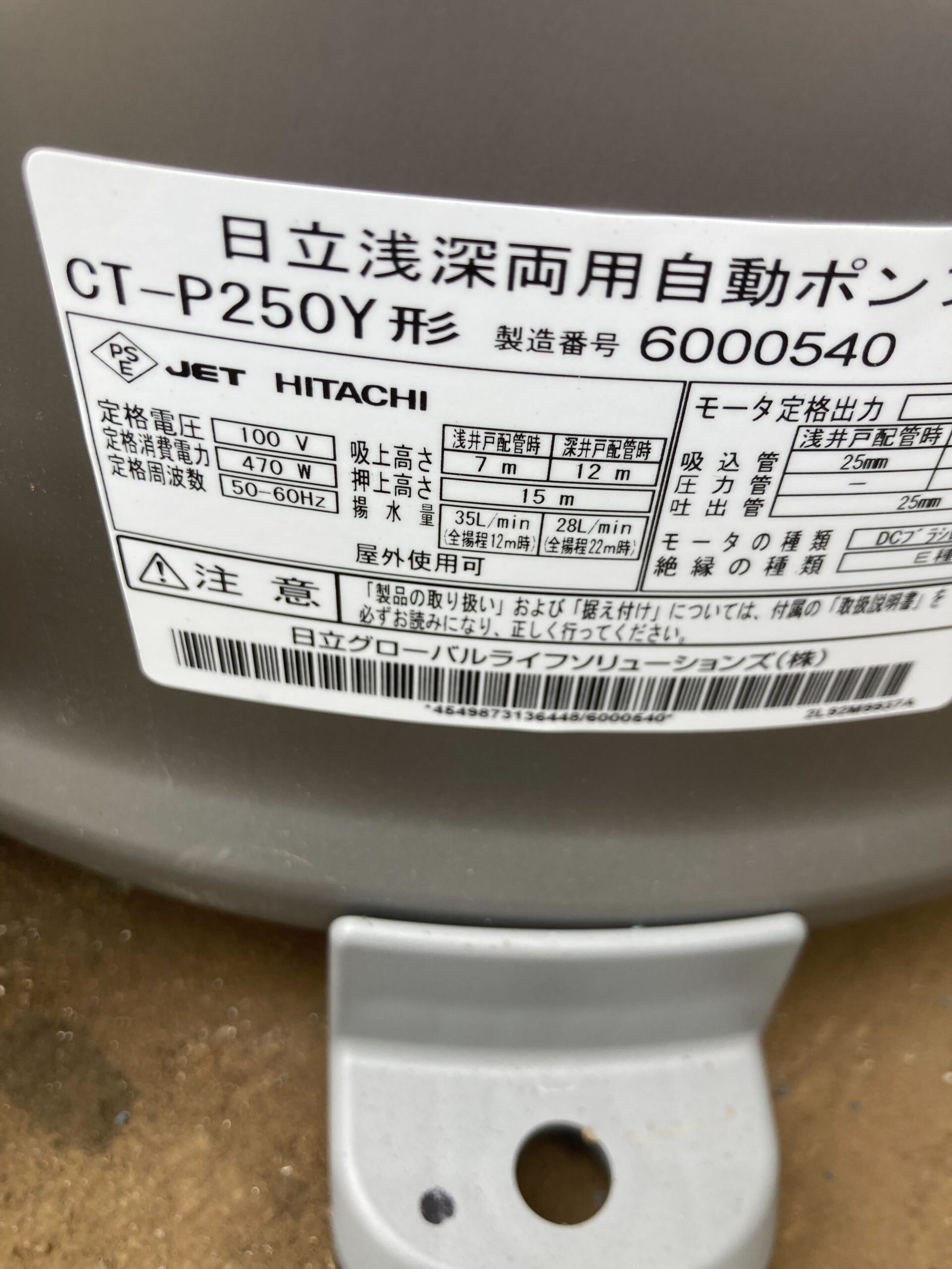 井戸ポンプ本体を長くお使いとの事でしたので、今回は経年劣化による本体故障と判断し、交換とさせていただきました。