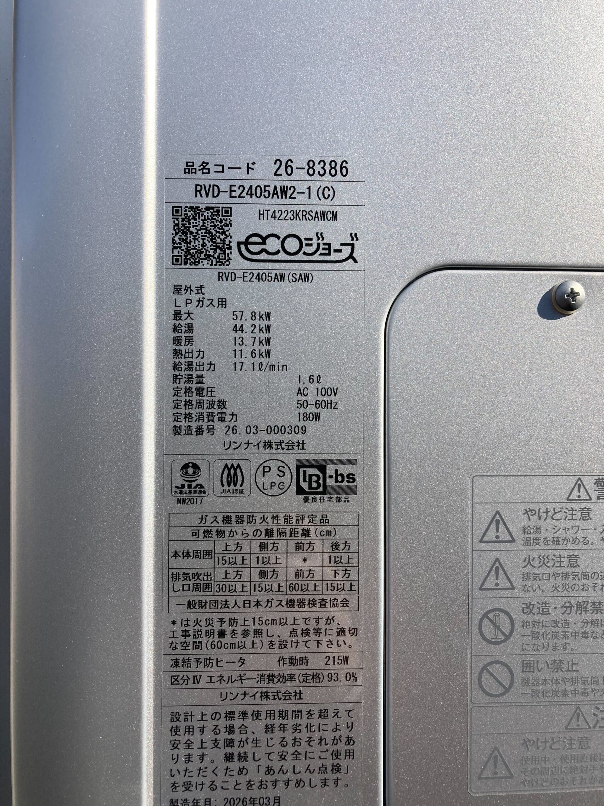 給湯器の交換工事におうかがいしました! お湯を使っているとだんだん温度が下がってしまう…とご相談のあったお客様邸です。