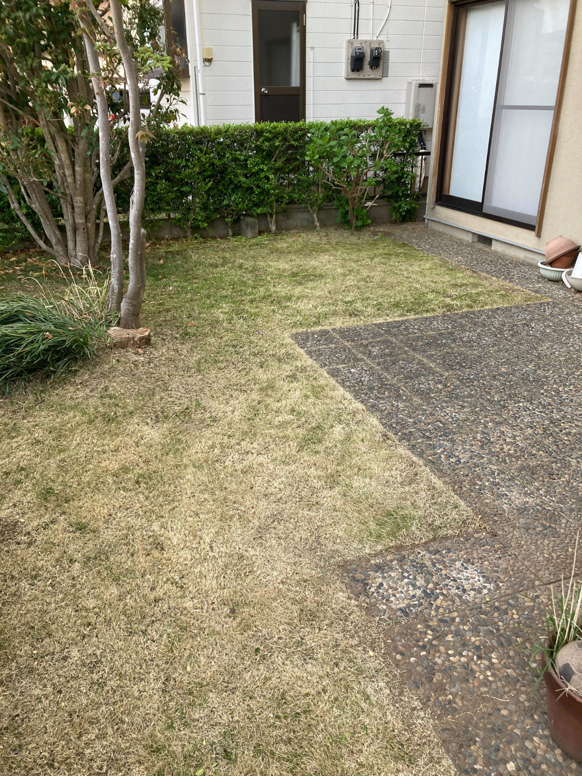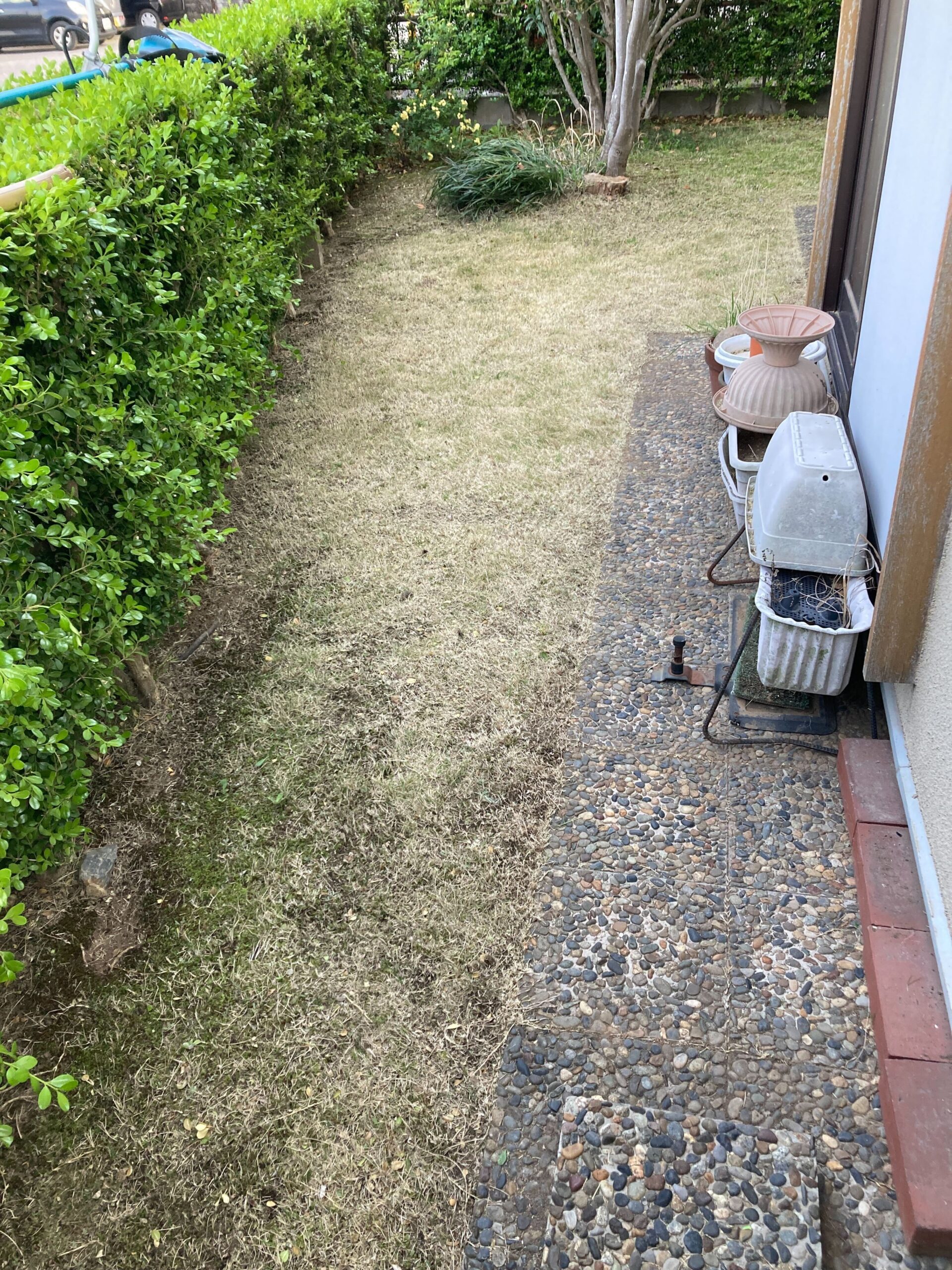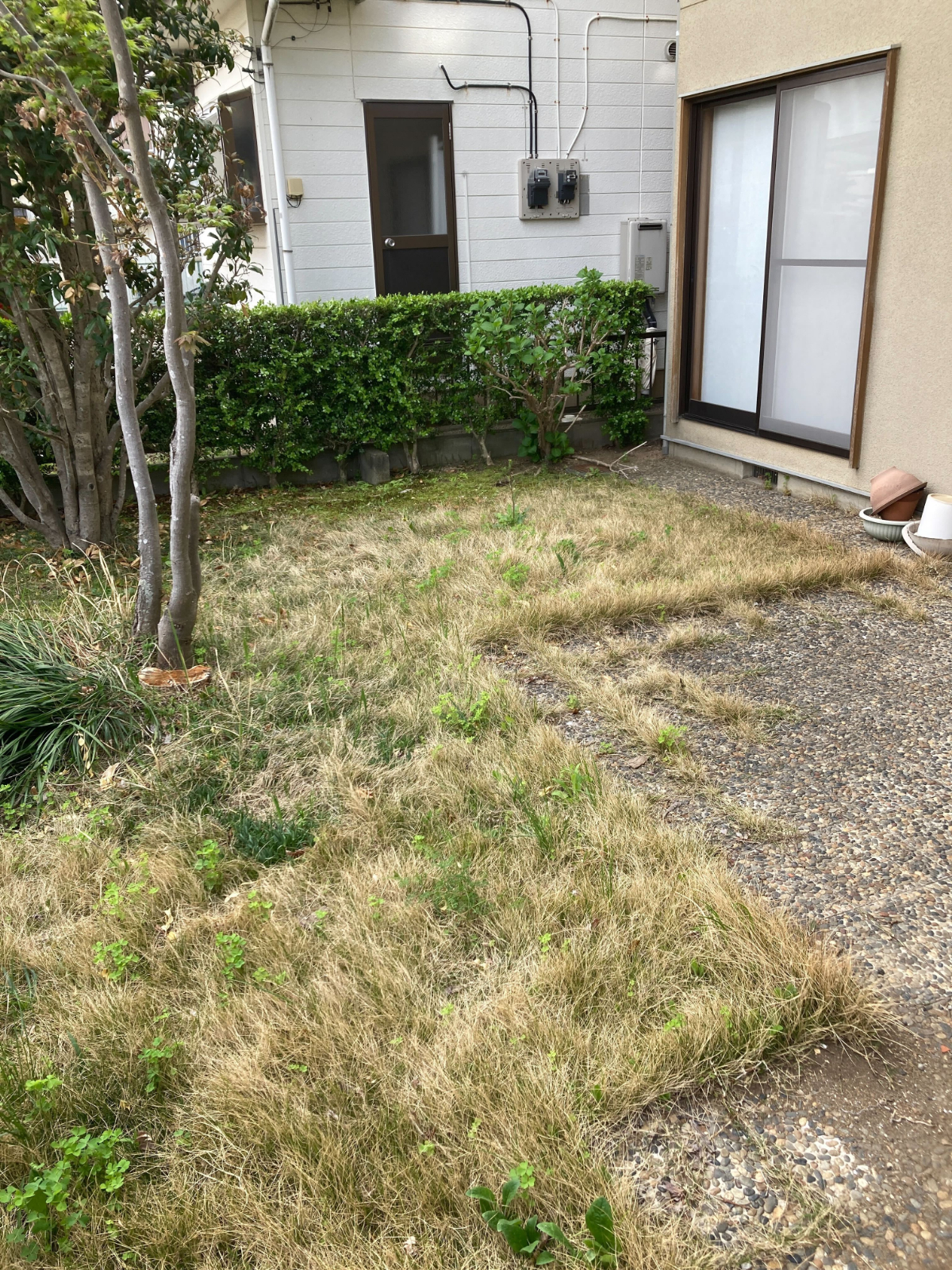芝刈りおよび草取り作業におうかがいしました! 今回は別の場所にお住まいのお身内の方より【管理されているお庭のお手入れ】としてご依頼いただきました。