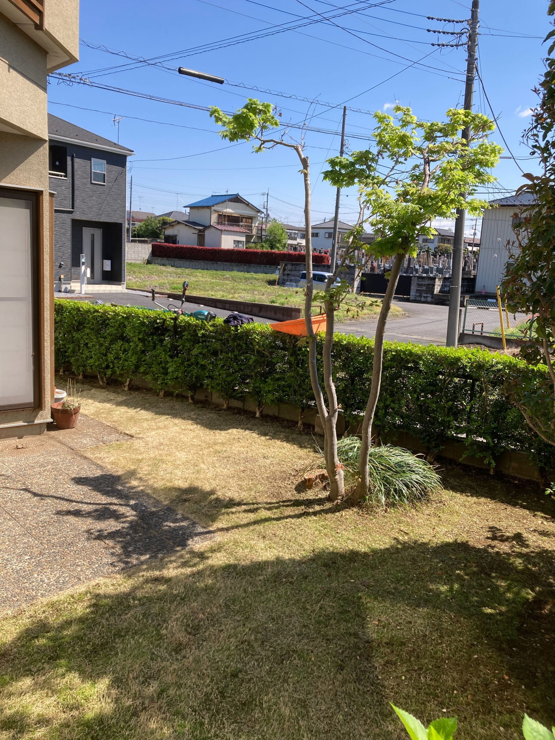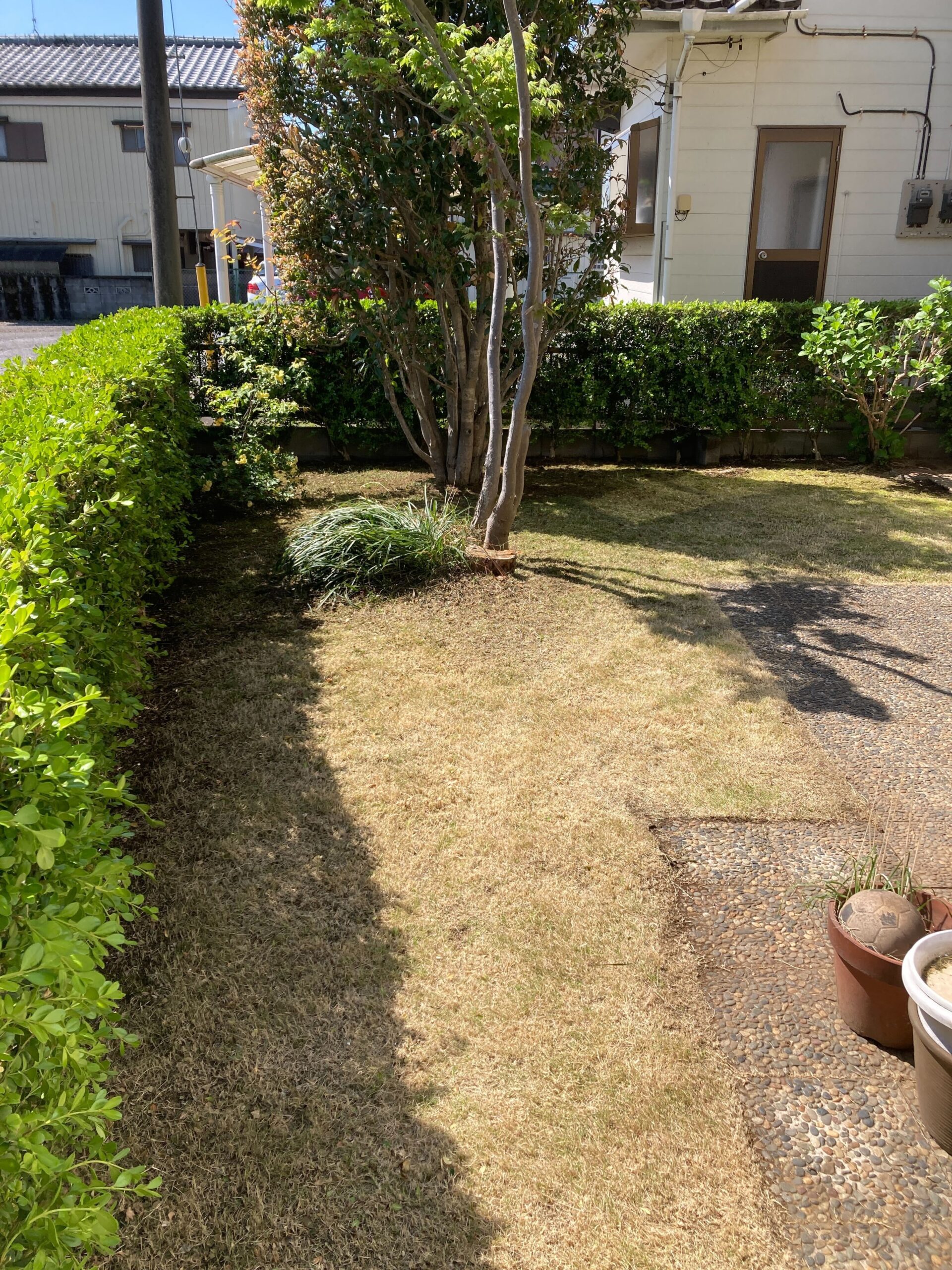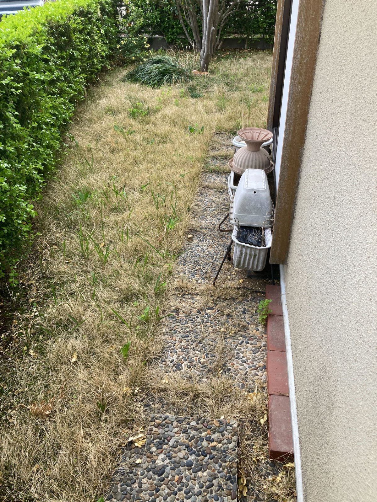 芝刈りおよび草取り作業におうかがいしました! 今回は別の場所にお住まいのお身内の方より【管理されているお庭のお手入れ】としてご依頼いただきました。