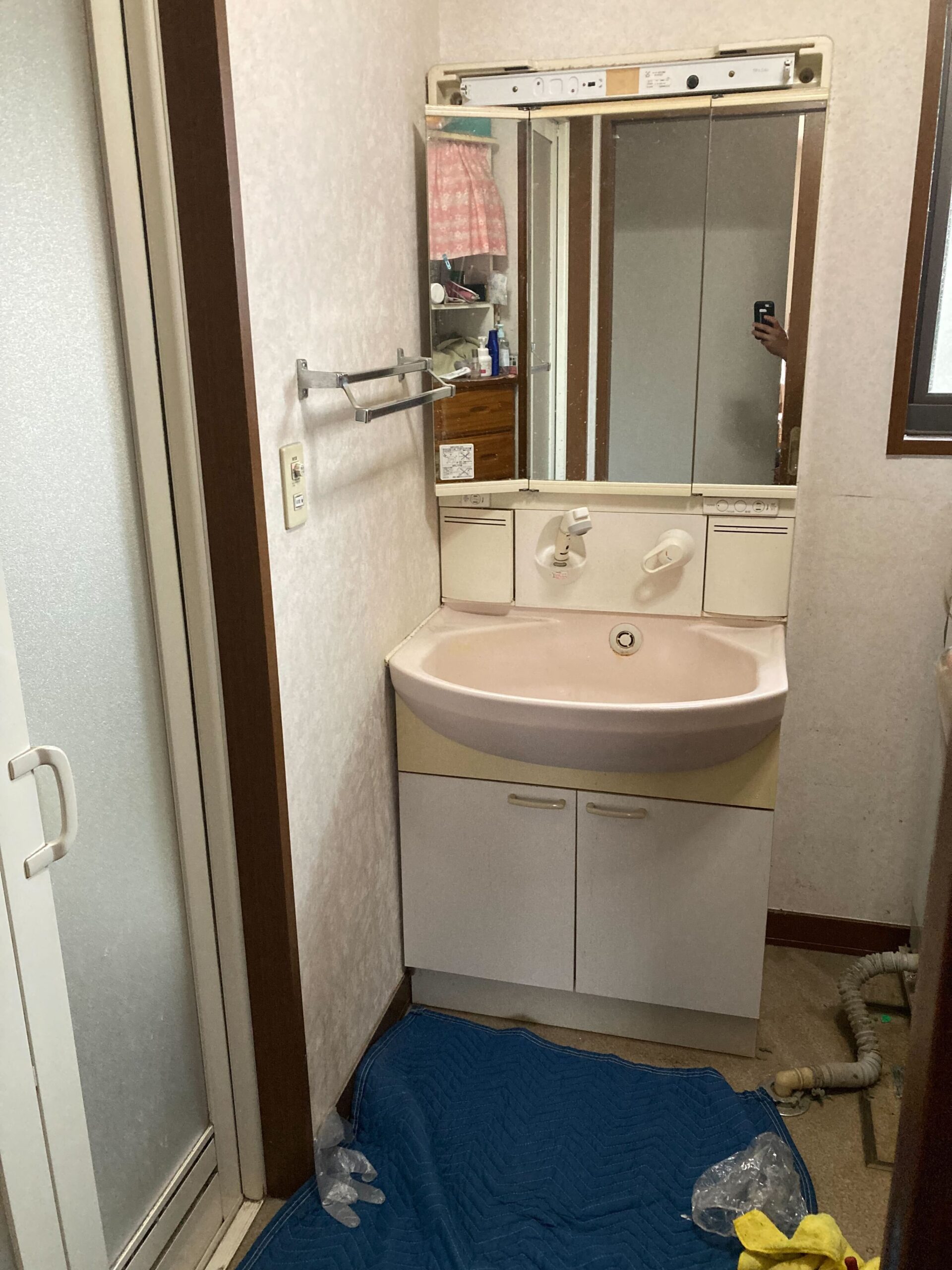今回はあらかじめご希望のメーカー・シリーズが決まっておりましたので、事前に既存の洗面化粧台のサイズや配管の状況を確認し、設置が可能かどうかをしっかりと調査いたしました。