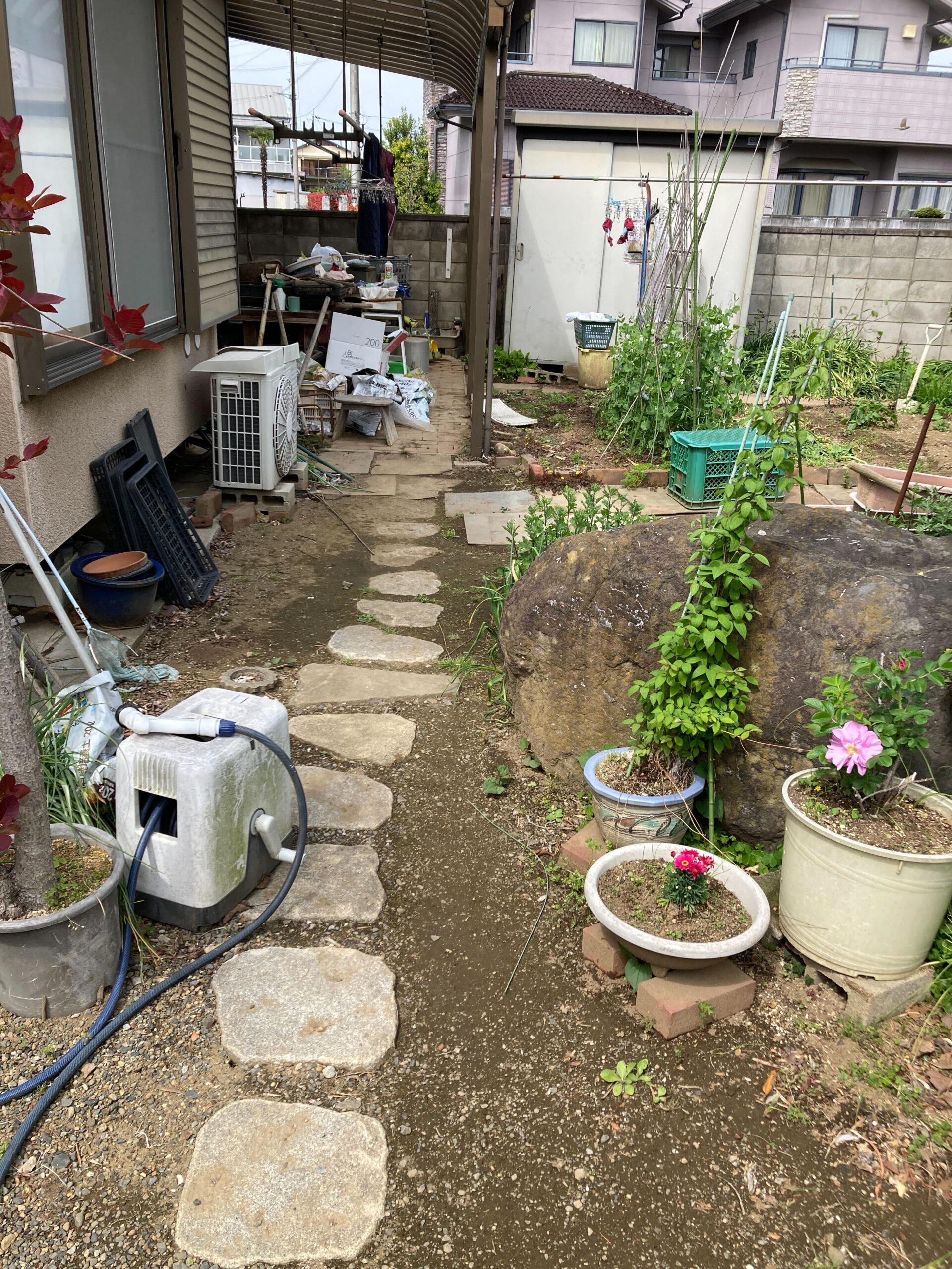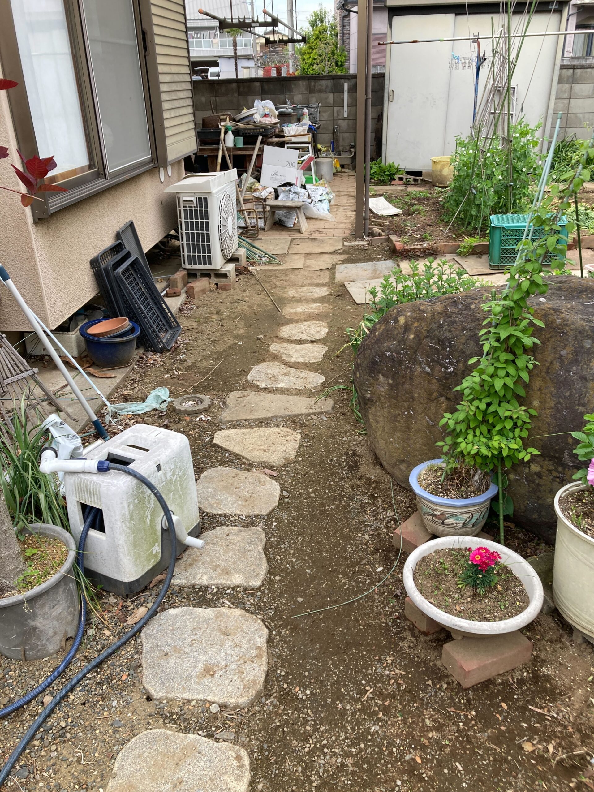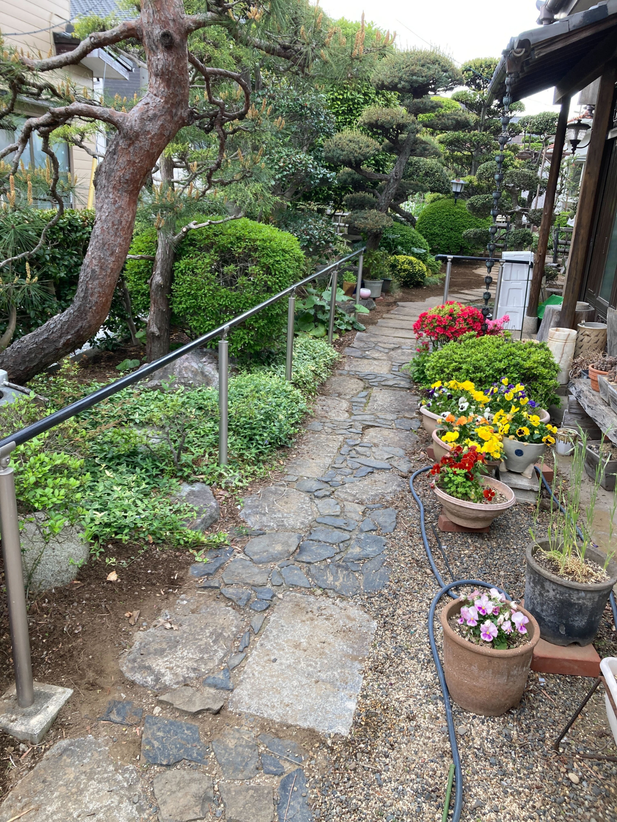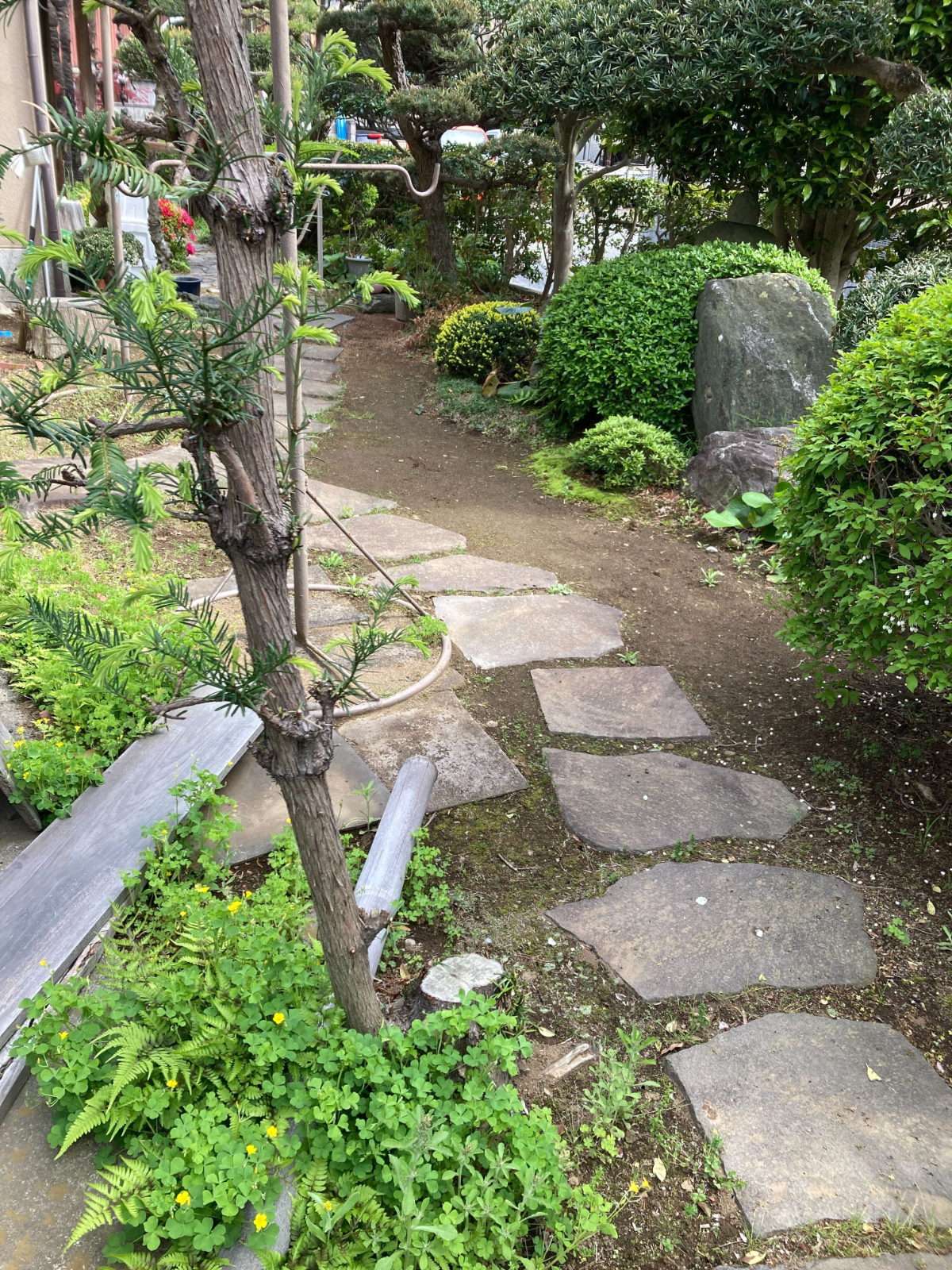 お庭には庭石や敷石、庭木などがあり、日頃から大切にされている様子が伝わってきました。