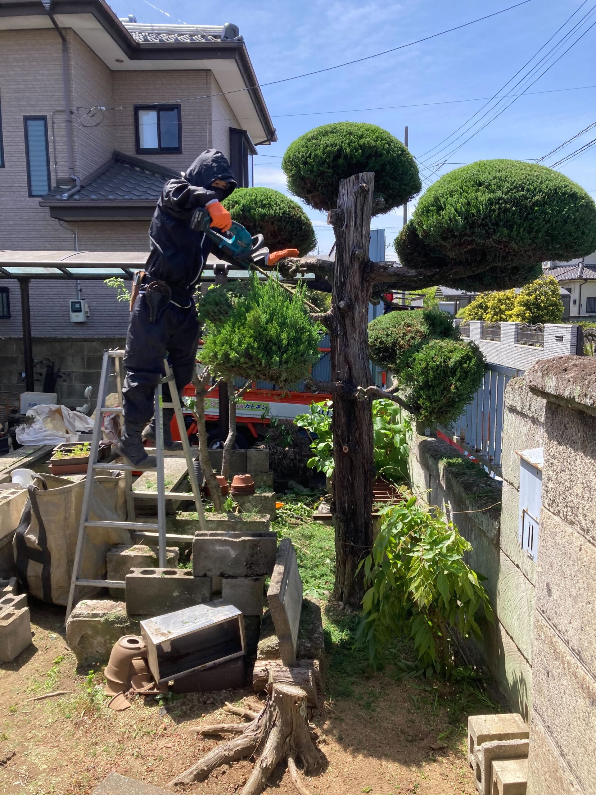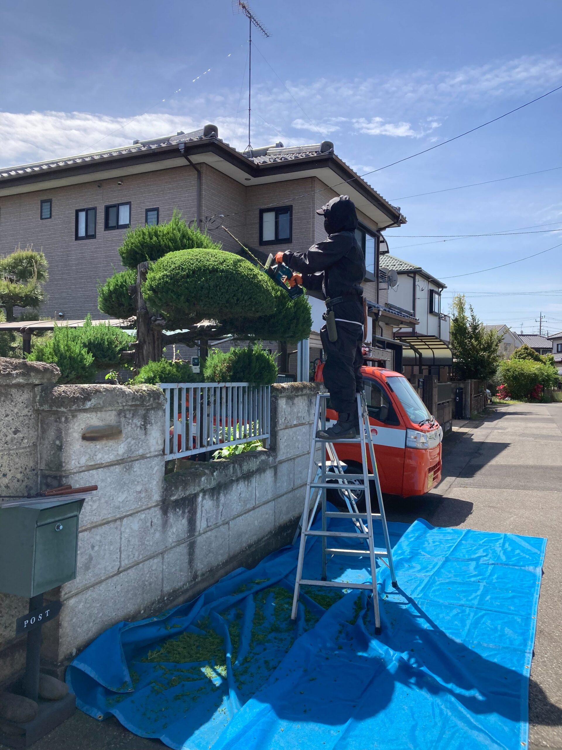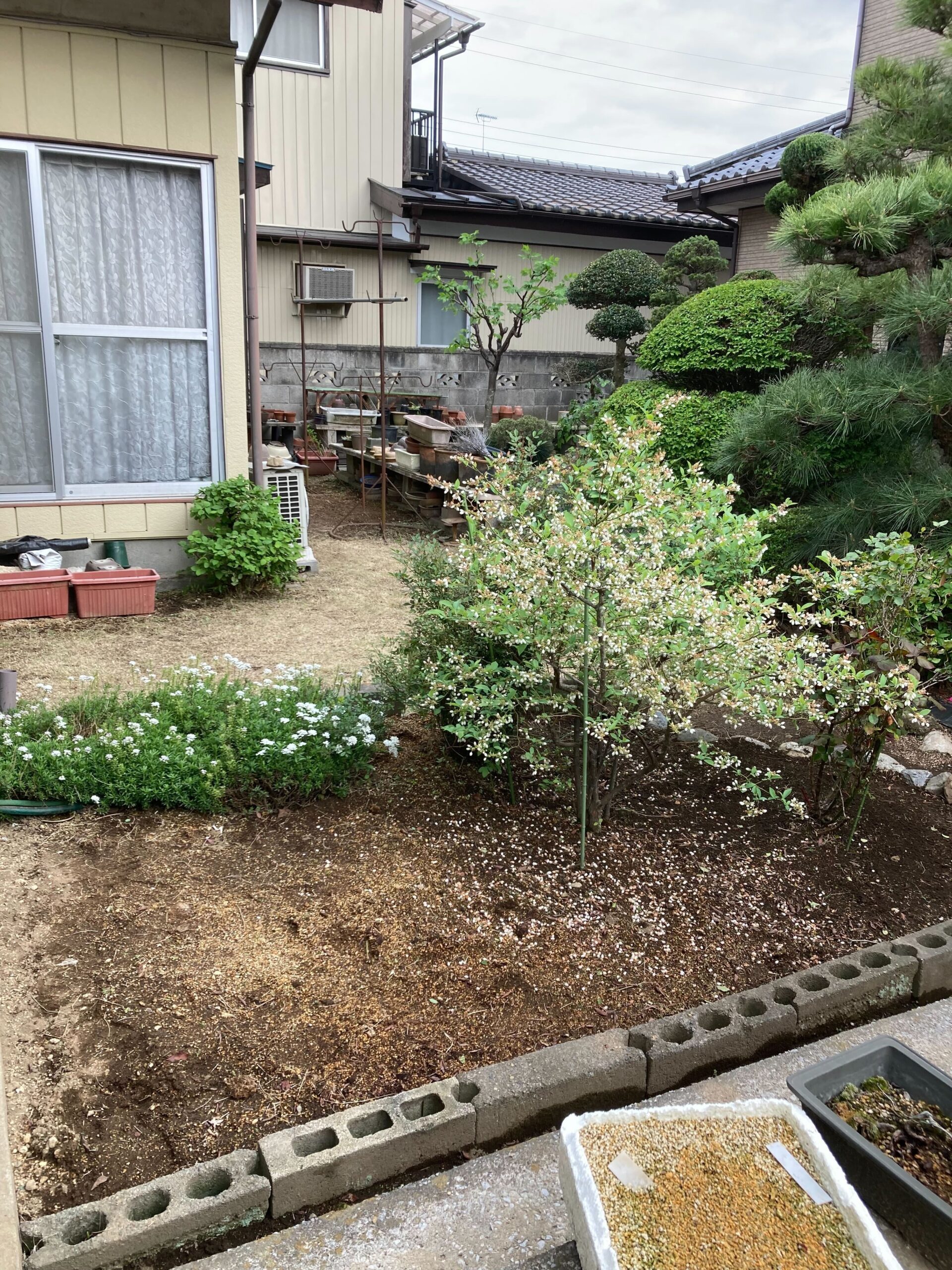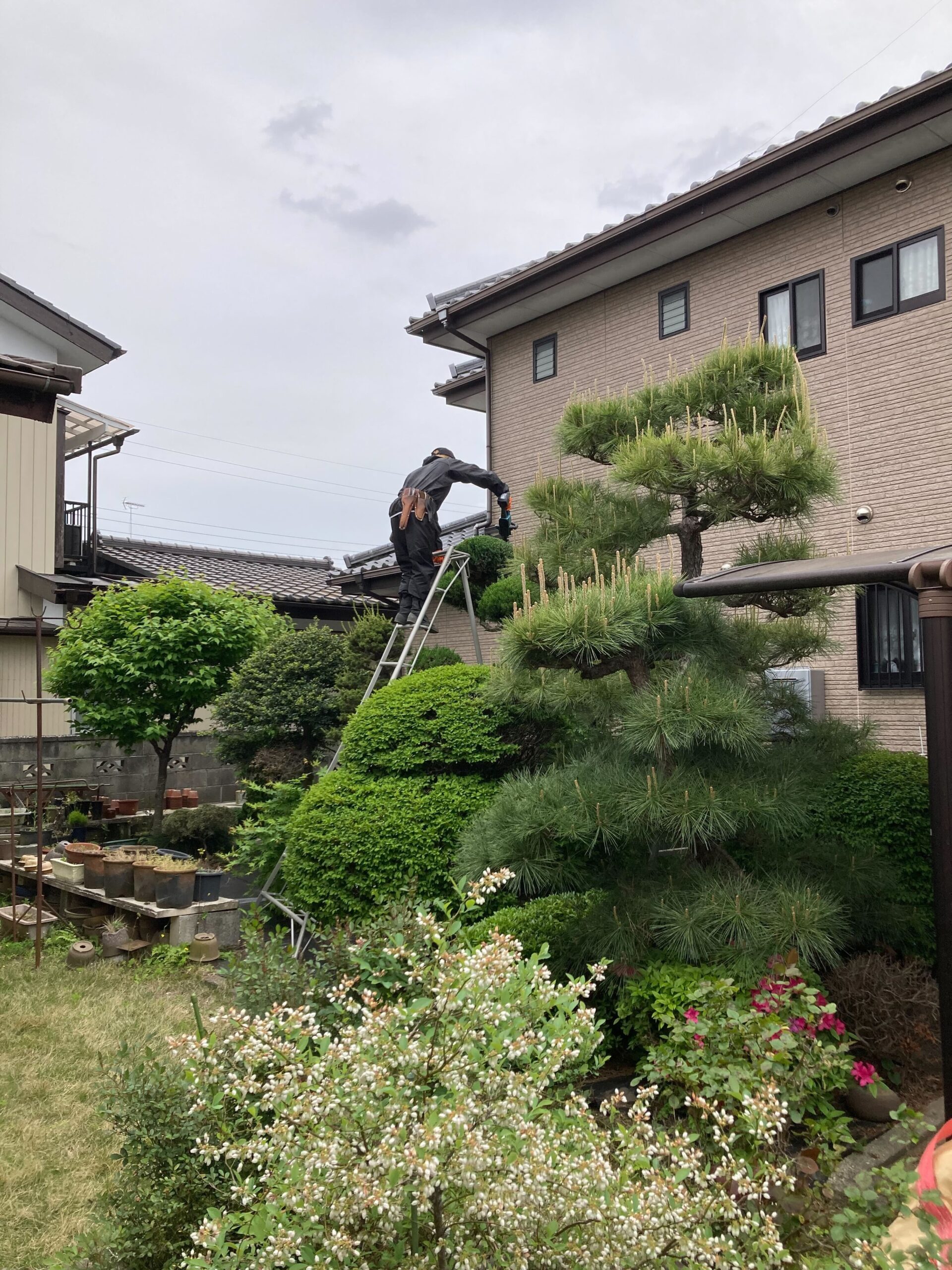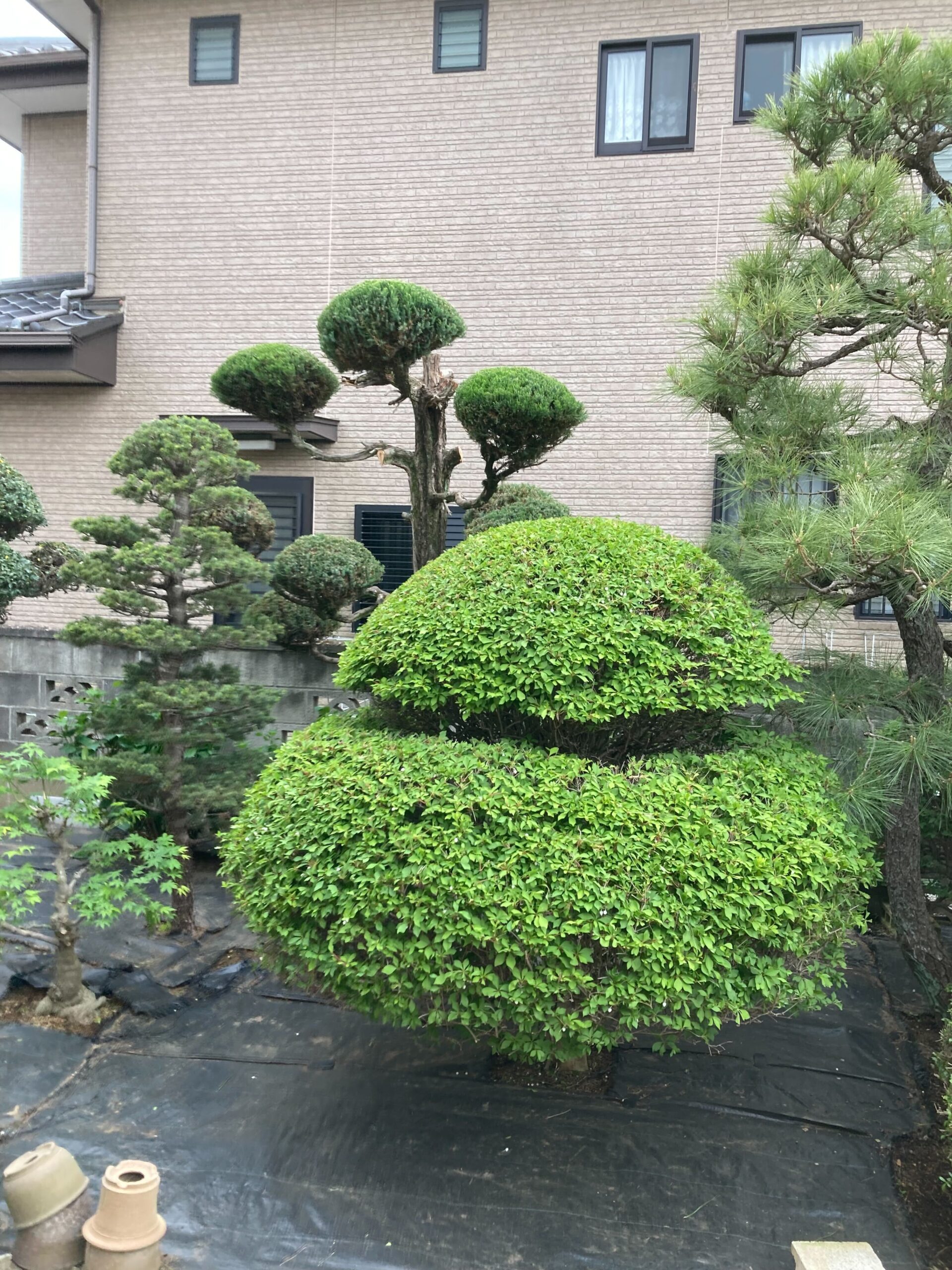 ひとつひとつの植木の形をきれいに整え、全体としてバランスよくまとまりのある印象に仕上げました。