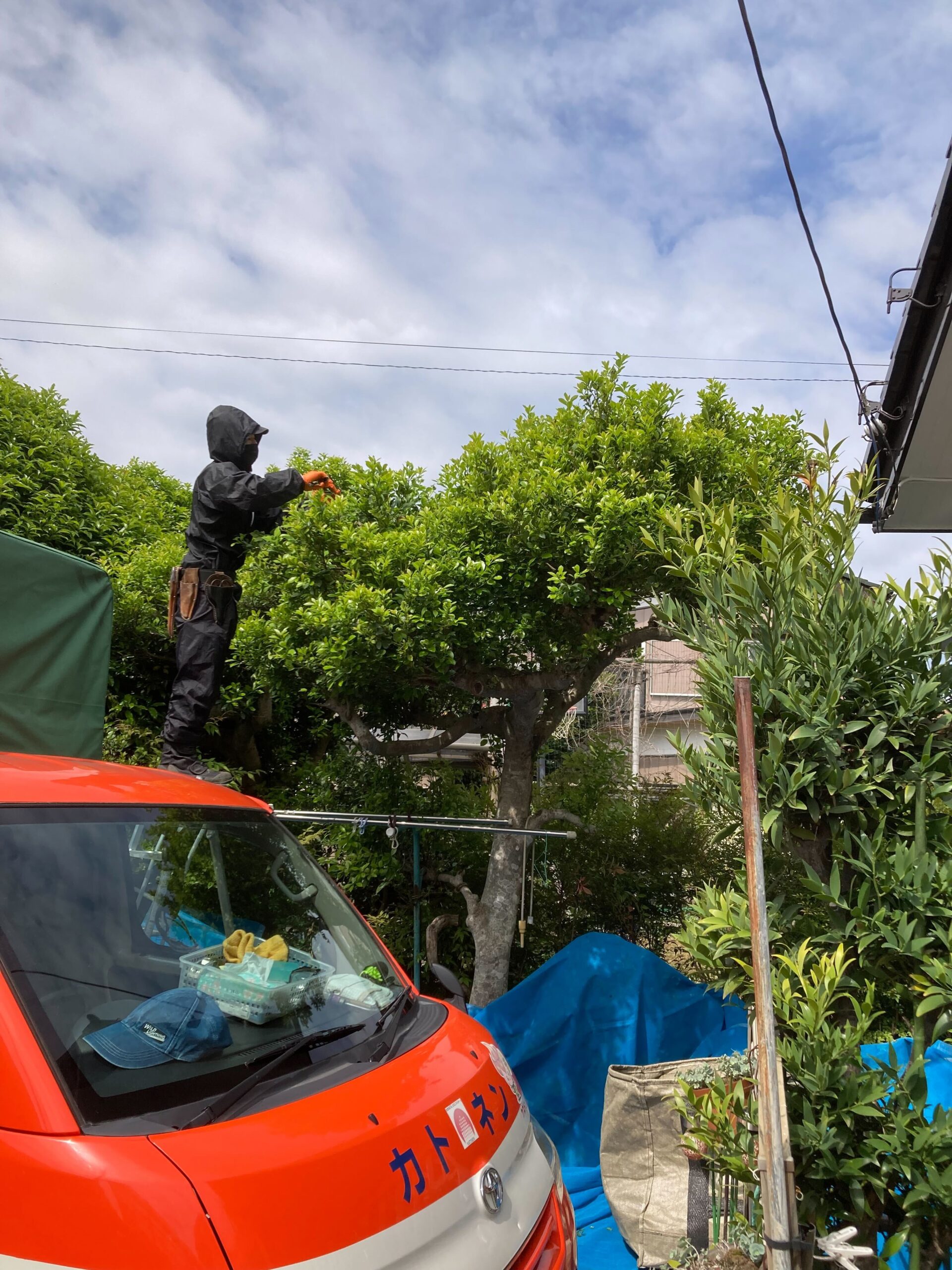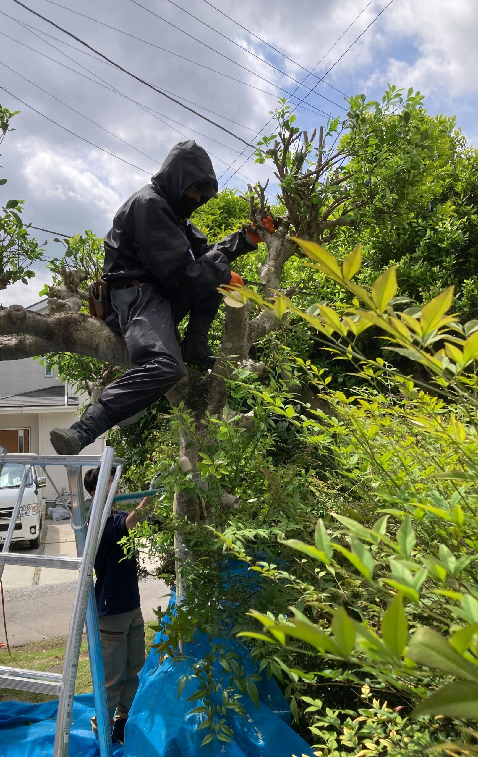 お庭の樹木の剪定をご依頼いただきました。 全体的に高さやボリュームが出てきていたため、今回はすっきりとコンパクトな仕上がりになるよう整えています。 また、今後樹高が高くなりすぎないよう、先端の枝葉だけでなく、太い枝もしっかりと剪定いたしました。 見た目のバランスを整えながらも管理のしやすい状態を意識して仕上げさせていただいておりますm(__)m