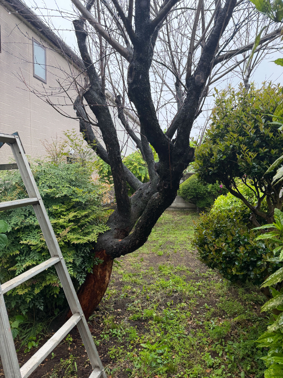 今回は枯れてしまった木の伐採のご依頼いただき、作業におうかがいしました。 「枯れてしまっているので倒れてしまう前になんとかしたい…」と、倒木のリスクを心配されてご相談をくださっていたお客様邸です。