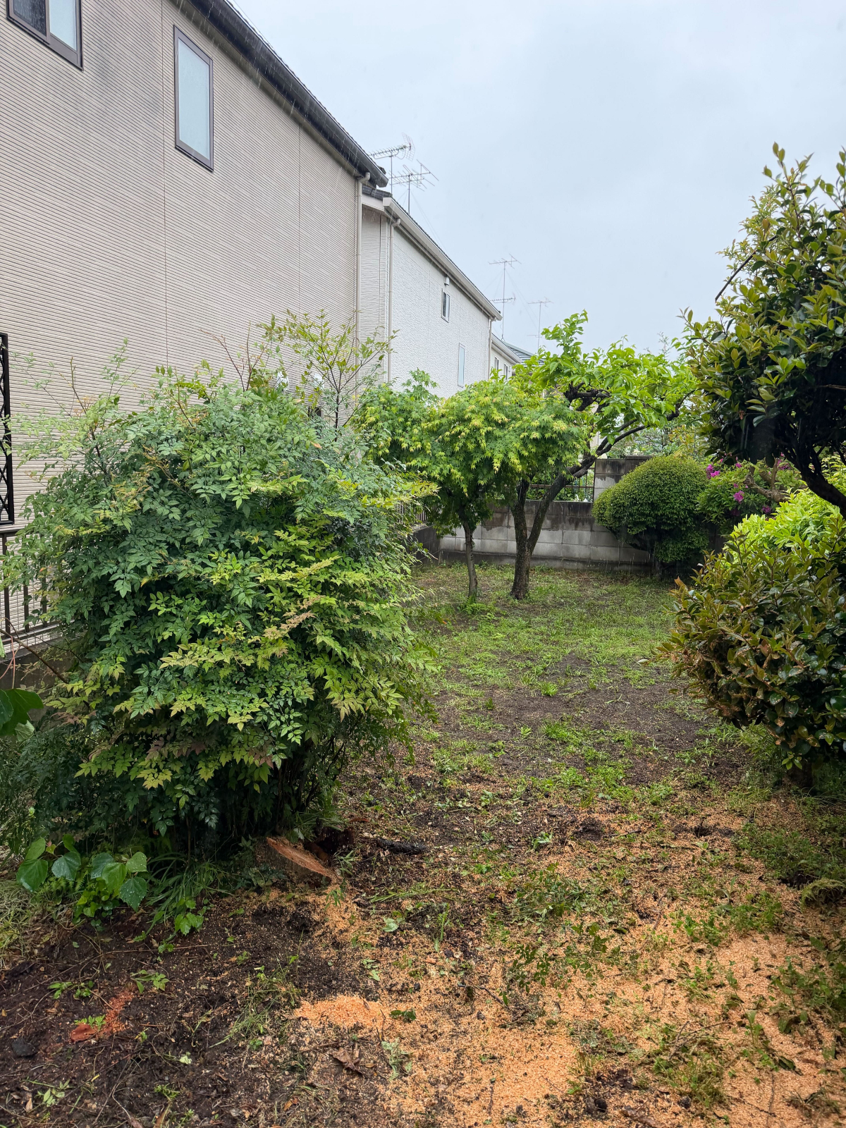 対象となる木の周辺にはほかの庭木や植栽もあるため、そちらにもしっかりと気を配りながら丁寧に伐採作業を行いました。 作業後には「これで安心しました!」とのお声もいただき、私たちとしてもお役に立てたことを嬉しく思っております。